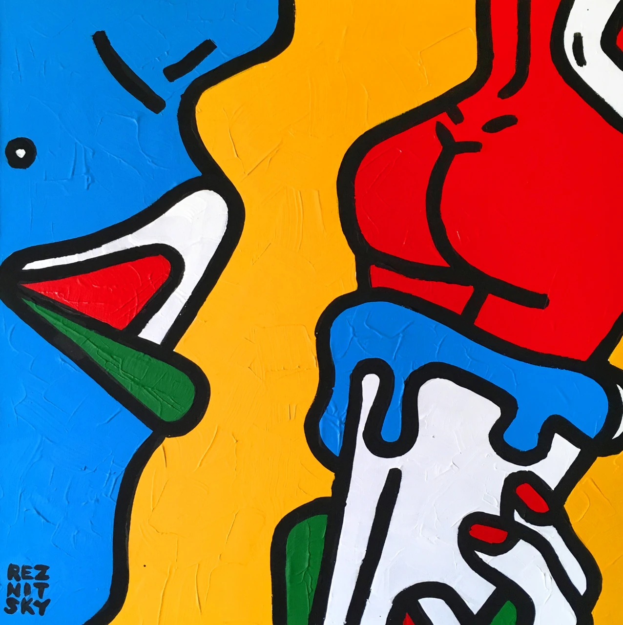 Роман Резницкий — художник, создающий визуальную философию. Он работает в стилях поп-арт и дот-арт. Первый стиль стал основой его бренда: яркие, философские, эротичные работы метафорично представляют суть современного общества.