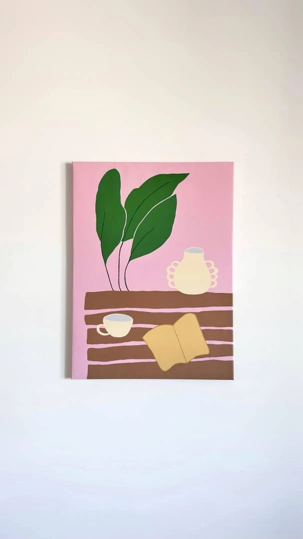 «...Эту картину я начала писать на Бали. «Розовую жизнь», как розовая стена в том кафе, где была лучшая каша на кокосовом молоке…»