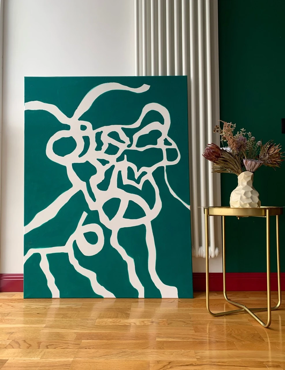 Эта картина — плод контакта с подсознанием. Сначала появились линии, затем — смыслы. Эта картина для рефлексии. То, что вы видите на ней — и есть то, что она значит для вас и то, о чем стоит поразмышлять. Кто-то видит здесь женский профиль, кто-то — любовь, кто-то — слона. А что видите вы?