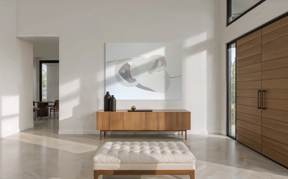 Пустое пространство не отделено от формы, а включено в её структуру, поддерживая равновесие и ритм. Светлые и приглушённые оттенки усиливают ощущение сосредоточенности и удержания.