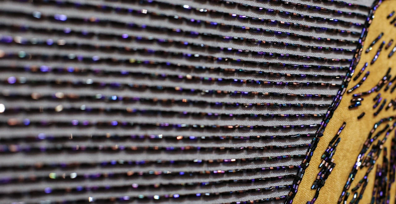 Саша Слон — художник, работающий с текстилем и стеклярусом. Центральное место в ее работах занимает деликатная и часто противоречивая природа моральных дилемм.