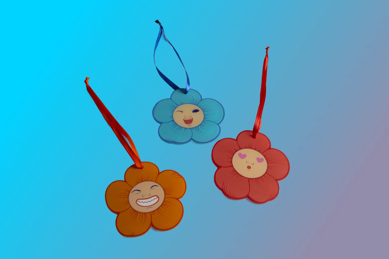 «В течение этого года я изучала японскую мангу и сделала проект в ее стилистике, используя своих вымышленных Существ. Там появились персонажи, разрывающиеся от улыбок и смеха, а их лица обрамляли лепестки цветов Сакуры. Это знаковое для Японии и желанное для туристов дерево. Меня сейчас очень увлекает особое отношение к цветению и природе в разных культурах. Так появились эти объекты/елочные игрушки. В них заложена моя попытка соединить два времени, два состояния. Вечно цветущие, улыбающиеся существа и холодная хвоя. Цветение вопреки увяданию».