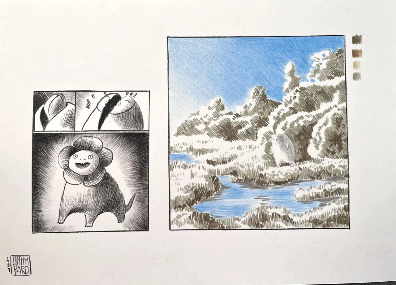 Бумага, цветные масляные карандаши (оформлена в раму)