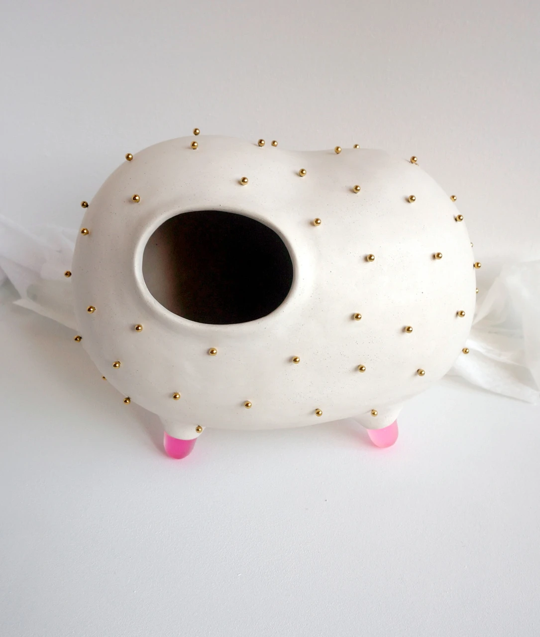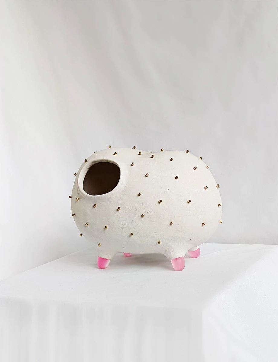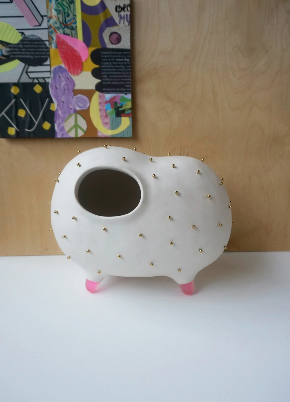 Белоснежное керамическое тело, нежно-розовые матовые ножки и акценты изысканных золотых бусин — этот забавный предмет мгновенно притягивает взгляд. «То-То» не просто интерьерная статуэтка, это источник хорошего настроения и центр приятных бесед. Добавьте игривости и индивидуальности своему пространству вместе с этим милым персонажем.