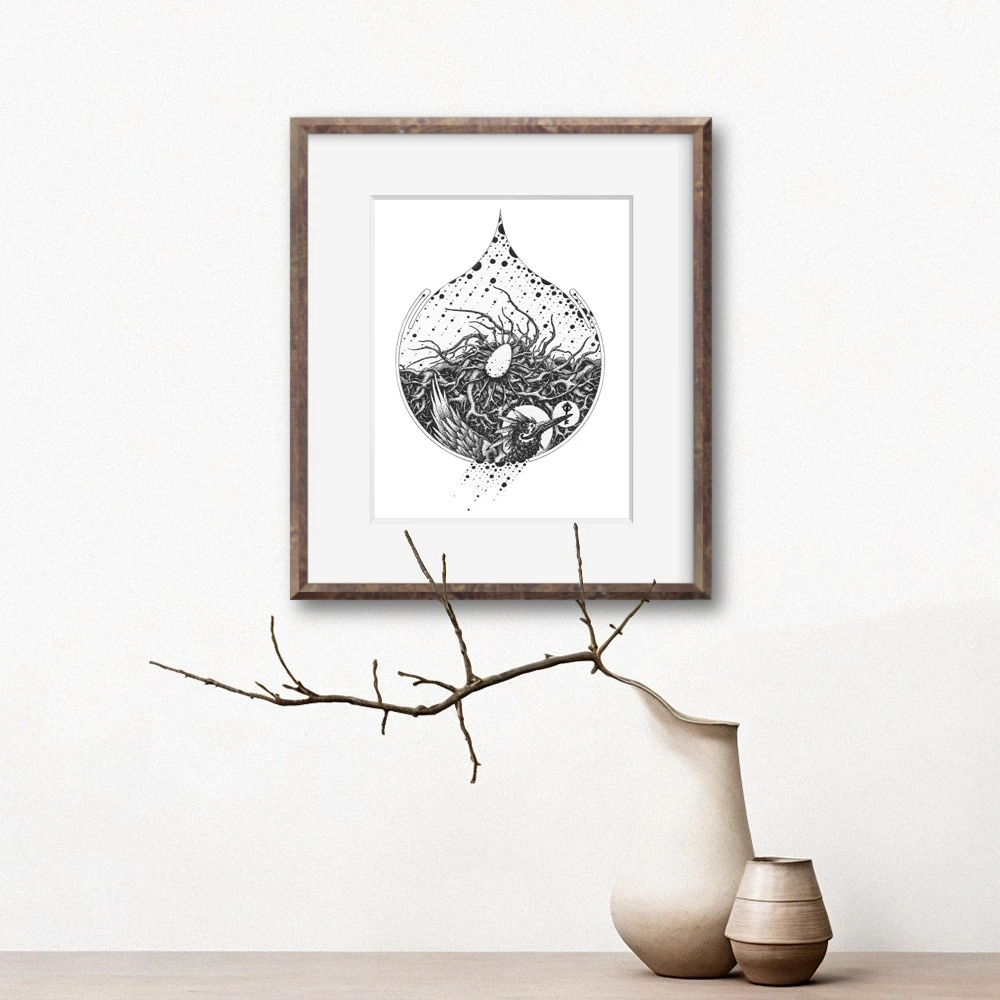 Каждая работа из серии иллюстрирует сосуществование цифрового мира и природного, в котором Птица олицетворяет органическое начало, которое ищет то выход из цифрового/псевдоинформационного лабиринта, то открыто с ним конфликтует, то гармонично сливается.