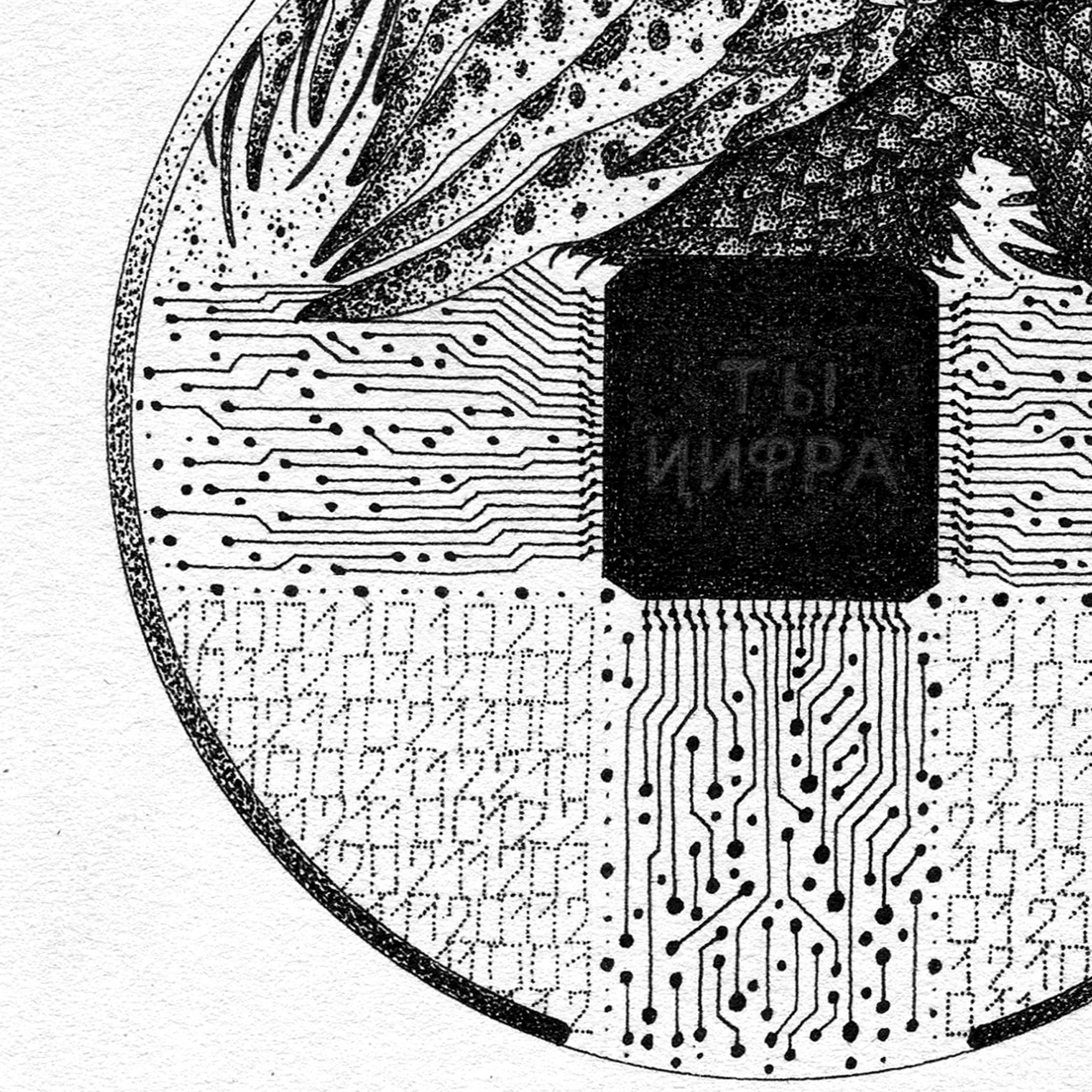 Каждая работа из серии иллюстрирует сосуществование цифрового мира и природного, в котором Птица олицетворяет органическое начало, которое ищет то выход из цифрового/псевдоинформационного лабиринта, то открыто с ним конфликтует, то гармонично сливается.