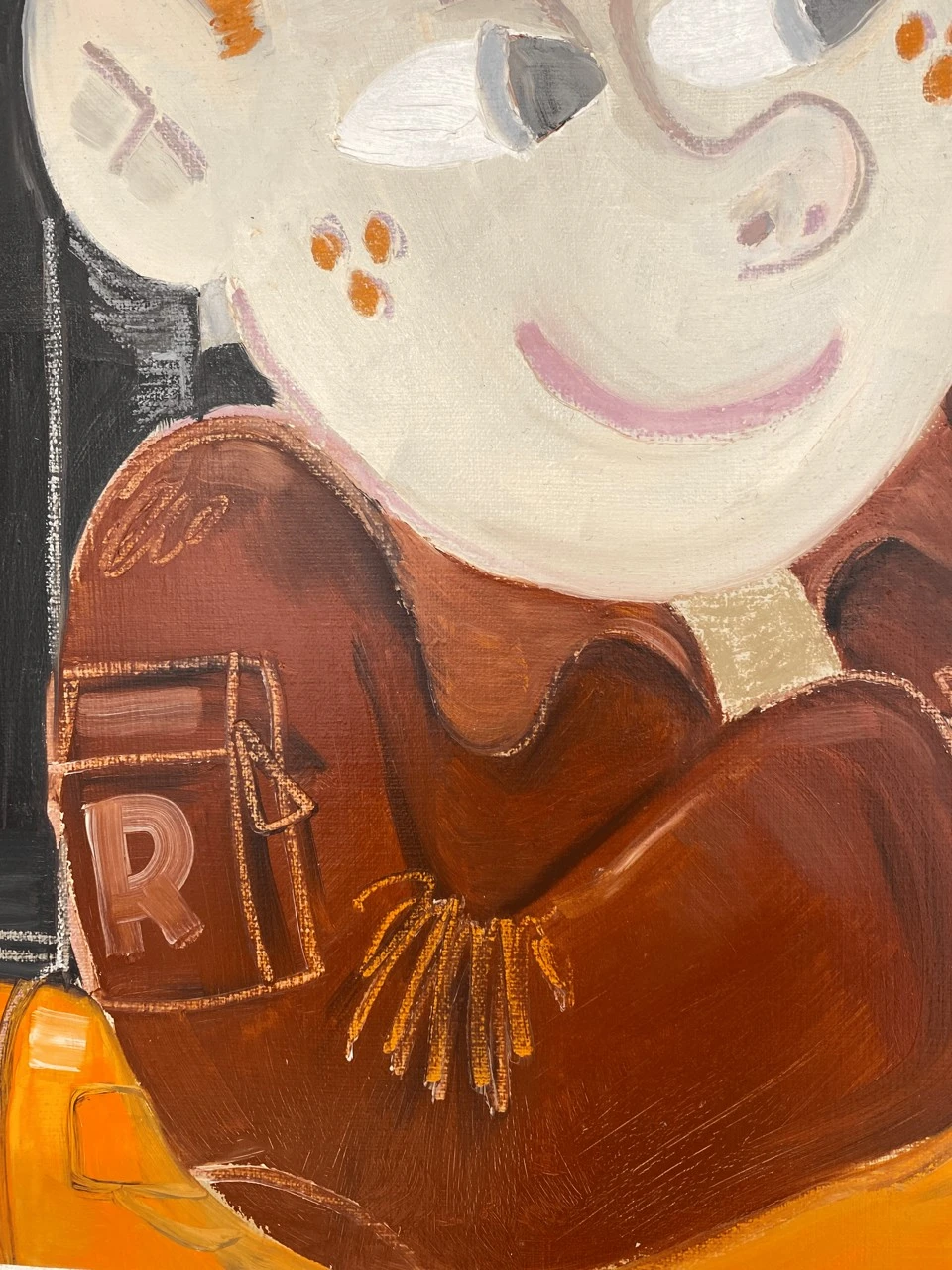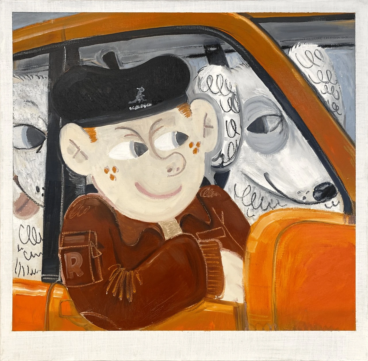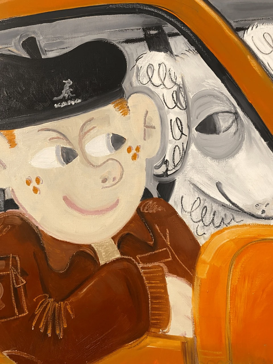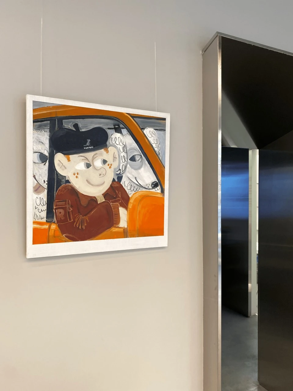Работа выполнена в эстетике полароида — как будто случайный кадр, вырванный из личной хроники или сна. Мы видим персонажа и двух собак в машине. Все они переглядываются, как будто знают нечто, что остаётся за кадром. В этом моменте нет конкретного действия, но есть сильное ощущение: что-то происходит или вот-вот произойдет. Тема ускользающего настоящего — мгновения, которое не удержать, но можно постараться зафиксировать. Сцена будто звучит: мы не слышим музыку, но ощущаем, что она играет (как любимый плейлист в дороге). Форма полароида усиливает эффект — как будто это не изображение, а воспоминание, найденное спустя годы. Неясное, вырванное из контекста, возможно даже вымышленное. Важен не столько сюжет, сколько атмосфера и каждый волен найти свои ответы.