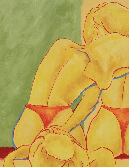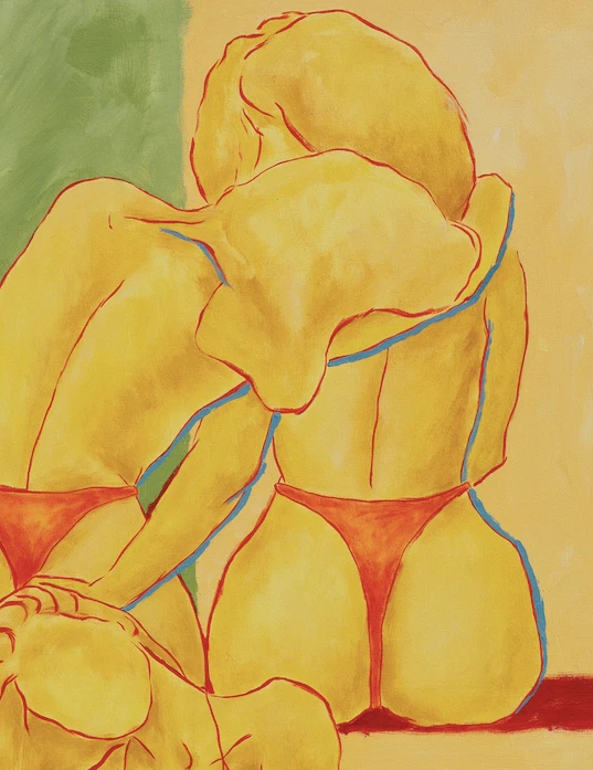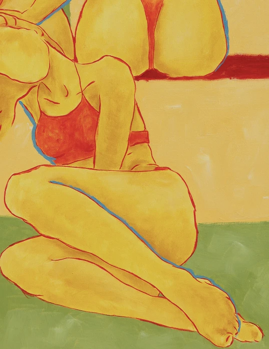 При этом даже когда мы занимаемся любимым делом и получаем от этого удовольствие, необходимо соблюдать меру. Именно это состояние — хрупкое равновесие между активностью и отдыхом — отражено в картине. Композиция построена на двух ключевых элементах: Во-первых, позы фигур передают ощущение равновесия и грации. Во-вторых, цветовая гамма создаёт особую атмосферу: спокойная палитра символизирует гармонию, а яркие акценты оранжевого, красного и голубого передают заряженное состояние и ощущение приятной усталости и удовлетворённости после активного труда.