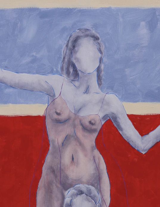 В картине я передаю эту идею через визуальные образы: жёсткие линии белой рамки сочетаются с мягкими контурами женского тела и прозрачной одежды. Позы персонажей также иллюстрируют эту концепцию: девушка создаёт вокруг себя своеобразную защитную “коробочку” руками, обозначая рамки, но при этом близко подпускает к себе другого человека, демонстрируя открытость и мягкость.