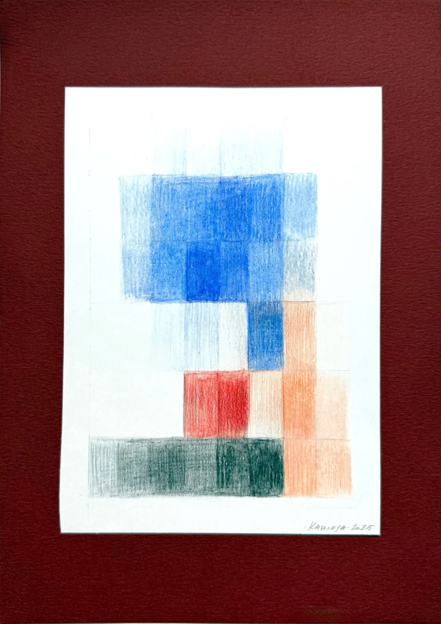 Через сочетание фигуративного сюжета и его «пиксельного» аналога я исследую напряжение между природным и искусственным, личным и общественным. В своих работах я акцентирую человеческое осязаемое проявление в мире, где все больше диджитального, цифрового и искусственного. Композиция следует порядку и правильной сетке, но штрих создает вибрацию цвета и фактуру, которая вносит тактильность и «неправильность», отражая человеческое присутствие.