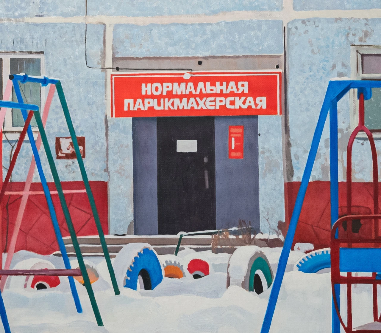 Художественная группа «Союз невозможных» работает с образами, найденными в интернете и повседневной жизни — визуальными формулами, случайно всплывающими из глубин обыденного. Мем здесь — не шутка, а шрам культуры, краткий аффект, визуальная формула коллективного бессознательного. Но, став живописью, он замедляется и превращается в когнитивный обрыв — в образ, который говорит, но не объясняет.
