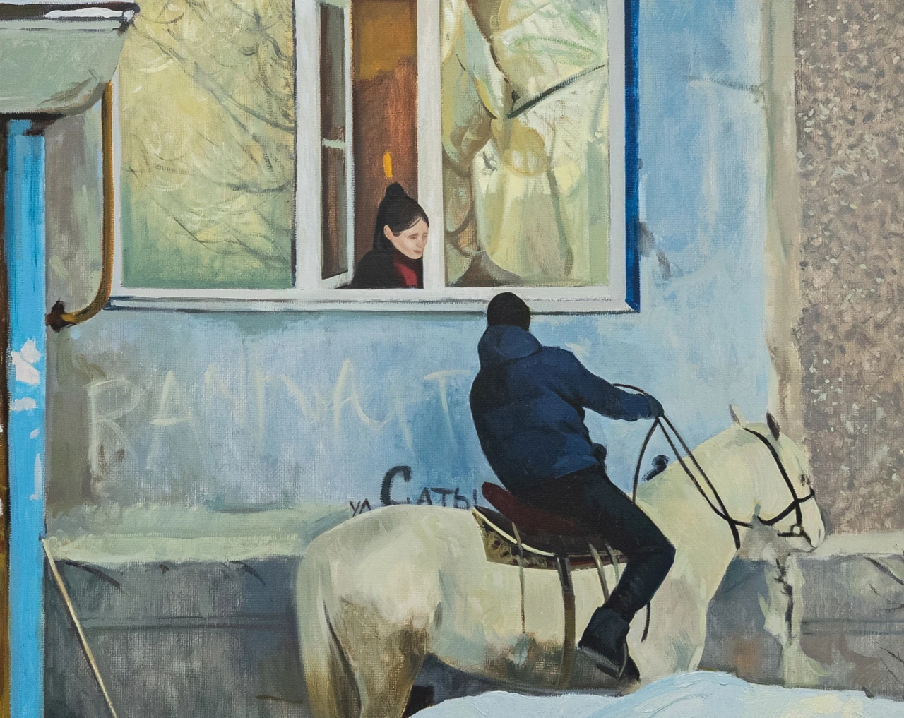 Художественная группа «Союз невозможных» работает с образами, найденными в интернете и повседневной жизни — визуальными формулами, случайно всплывающими из глубин обыденного. Мем здесь — не шутка, а шрам культуры, краткий аффект, визуальная формула коллективного бессознательного. Но, став живописью, он замедляется и превращается в когнитивный обрыв — в образ, который говорит, но не объясняет.