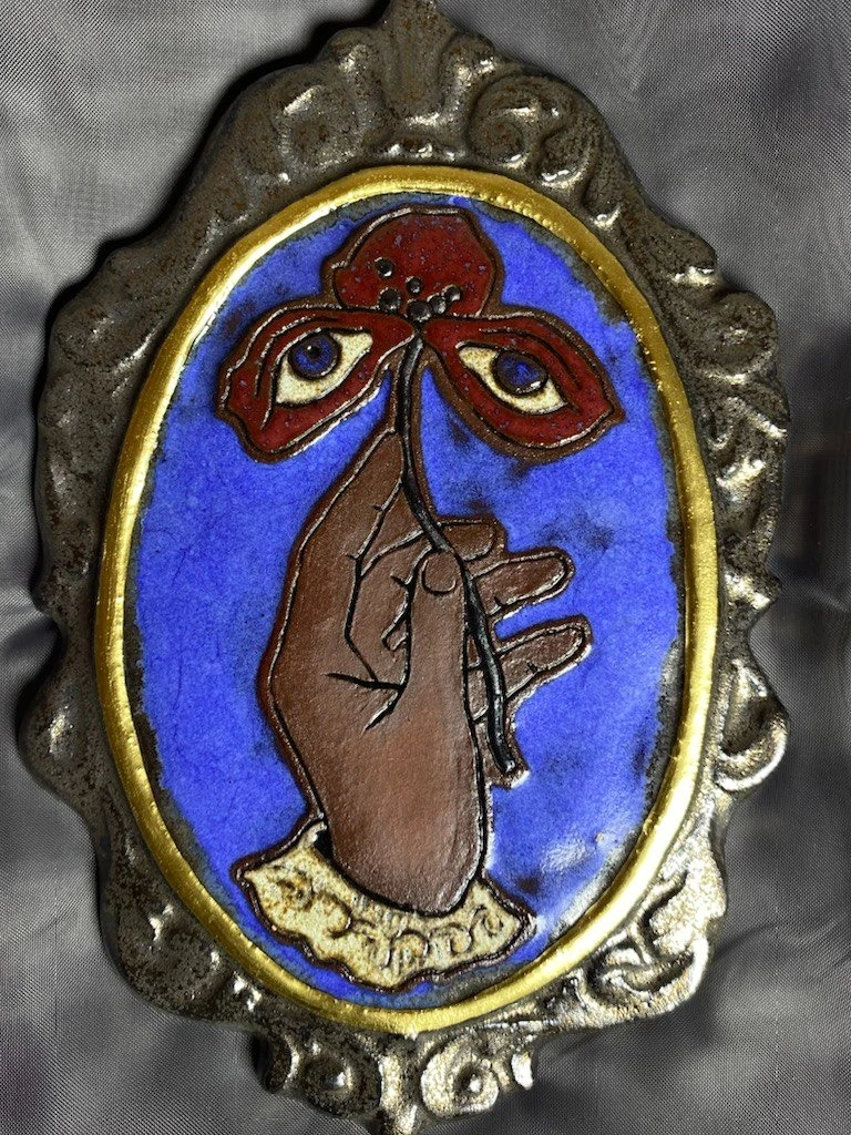 Серия тиражной керамики. На эти работы меня вдохновила католическая иконография с изображением Святой Лукреции. Эти глаза — знак чистоты и невинности, а также веры в свой выбор и путь.