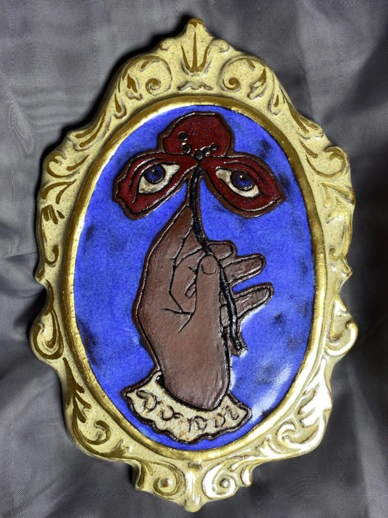 Серия тиражной керамики. На эти работы меня вдохновила католическая иконография с изображением Святой Лукреции. Эти глаза — знак чистоты и невинности, а также веры в свой выбор и путь.
