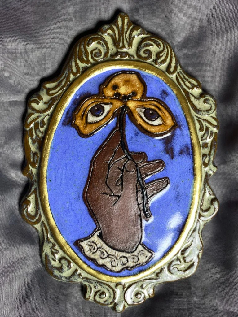 Серия тиражной керамики. На эти работы меня вдохновила католическая иконография с изображением Святой Лукреции. Эти глаза — знак чистоты и невинности, а также веры в свой выбор и путь.
