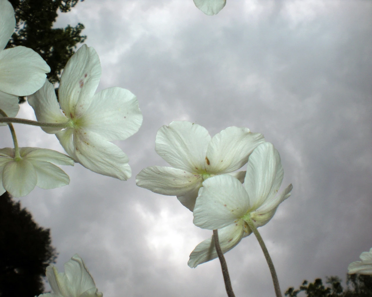 Работа «Небеса II» — это авторская фотография, выполненная с использованием техники пластификации. Композиция представляет собой крупный план белых цветов на фоне облачного неба. Лепестки цветов, слегка подрагивающие, создают ощущение движения и легкости, контрастируя с массивностью небесной стихии. Мягкие переходы света и тени, а также нежная палитра оттенков белого и серого придают изображению атмосферу умиротворения и созерцания.