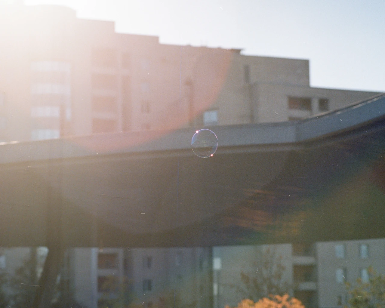 Работа «Сон» — это фотография, запечатлевшая мыльный пузырь на фоне городской застройки. Мягкий солнечный свет, пробивающийся сквозь объектив, создает ощущение легкого тумана и рассеивает четкость контуров зданий. Пузырь, словно хрупкое воплощение мечты, парит в воздухе, отражая в себе радужные переливы. Композиция выстроена на контрасте между статичностью архитектуры и динамикой летящего пузыря. Гармоничная палитра, построенная на теплых оттенках заката и прохладных тонах неба, создает меланхоличное настроение.