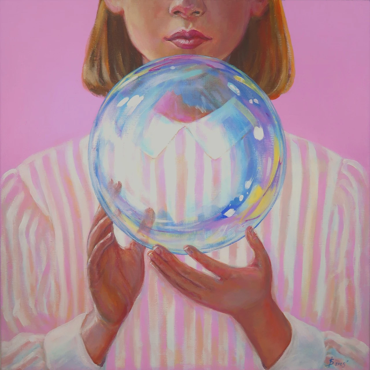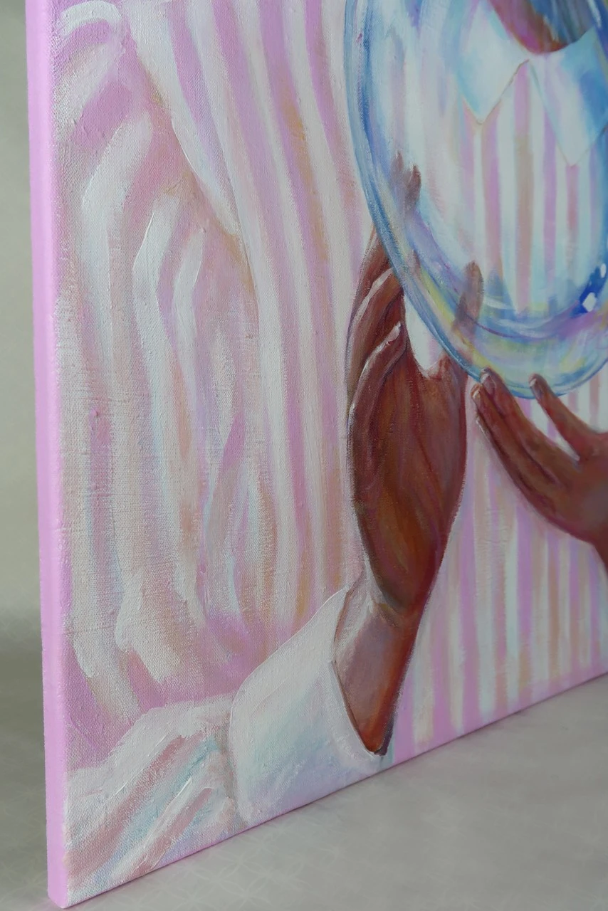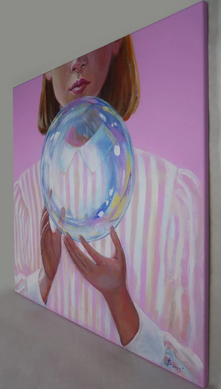 Картина «Хрупкость бытия» несет глубокий философский взгляд на жизнь, её быстротечность и таинственность. В центре композиции изображена девочка, держащая мыльный пузырь. Этот элемент, столь простой и знакомый каждому из нас, становится не только атрибутом детства, но и символом, отражающим суть человеческого существования.