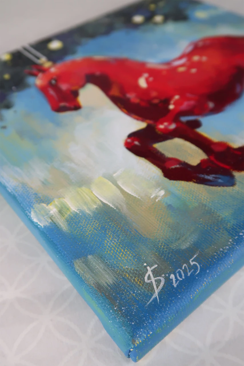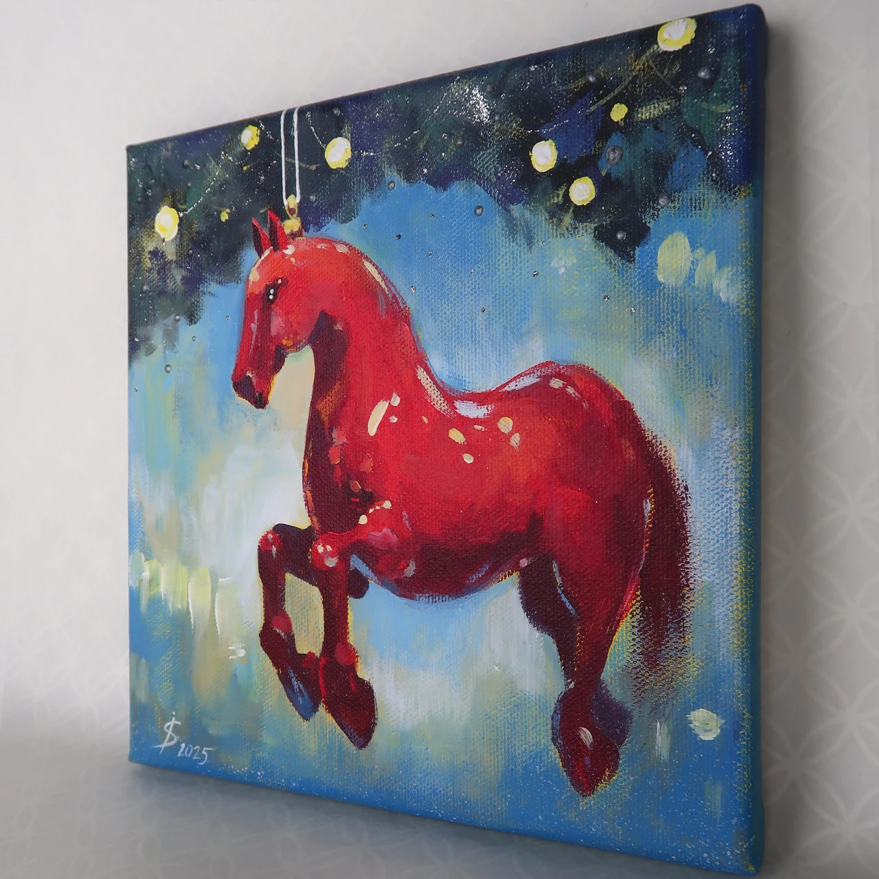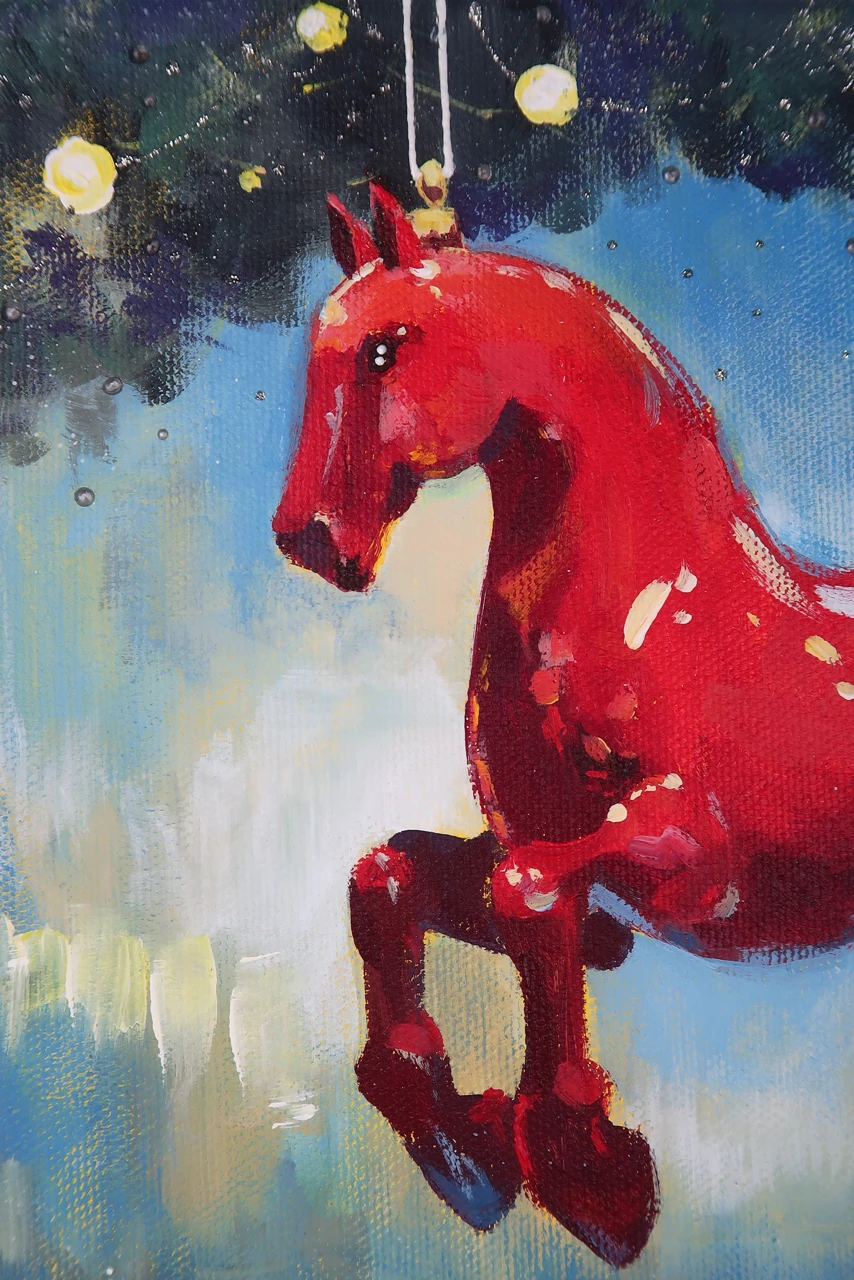 Картина «Красный конь» из серии «Новогоднее настроение», которую художница Светлана Искоских посвятила новогоднему настроению. Каждая картина из серии является напоминанием о том, что даже в обычные дни мы можем находить волшебство.