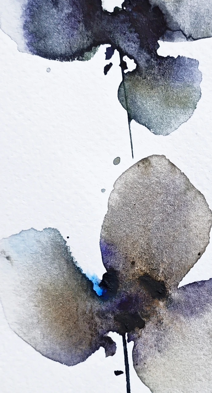 Картина «Арктические Орхидеи» — это утончённая ботаническая абстракция в стиле минималюкс, выполненная в холодной гамме серого, голубого и фиолетового. Три абстрактных цветка с выразительными тёмными центрами парят на тонких чернильных стеблях, создавая идеальный баланс между мягкими акварельными заливками и чёткими графическими линиями. Композиция воплощает гармонию природных форм и современного дизайна, рождая ощущение северной свежести и элегантности.