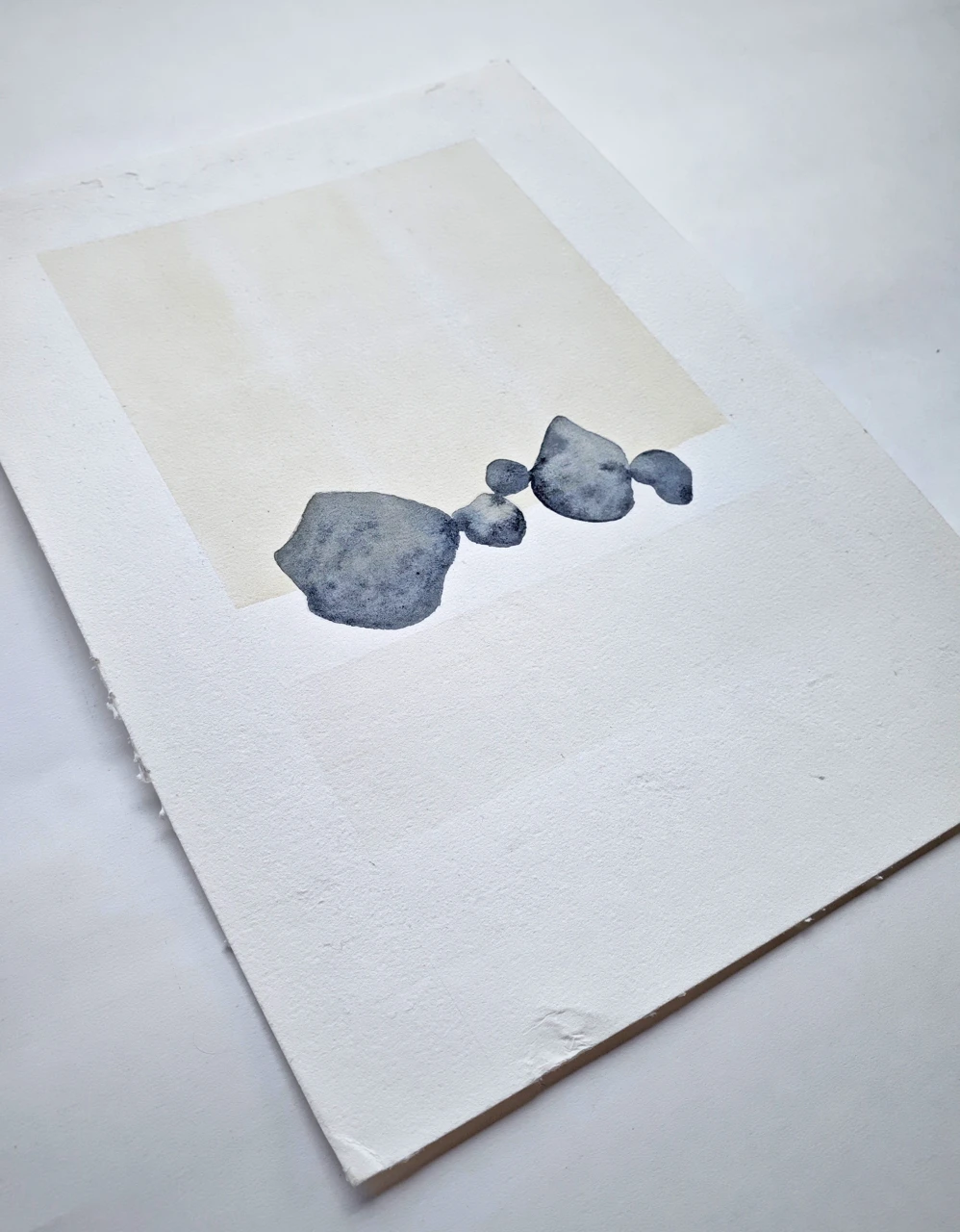 Картина «Песчаный Берег» — это медитативная абстракция в стиле минималюкс, исследующая тихую гармонию формы и пустоты. Несколько серых элементов, напоминающих сглаженные волной камни, замерли на границе тёплого песчано-жёлтого и чисто-белого фона. Композиция дышит равновесием и покоем, а тонкие переходы прозрачной акварели создают ощущение света, воздуха и едва уловимой текстуры природного материала.