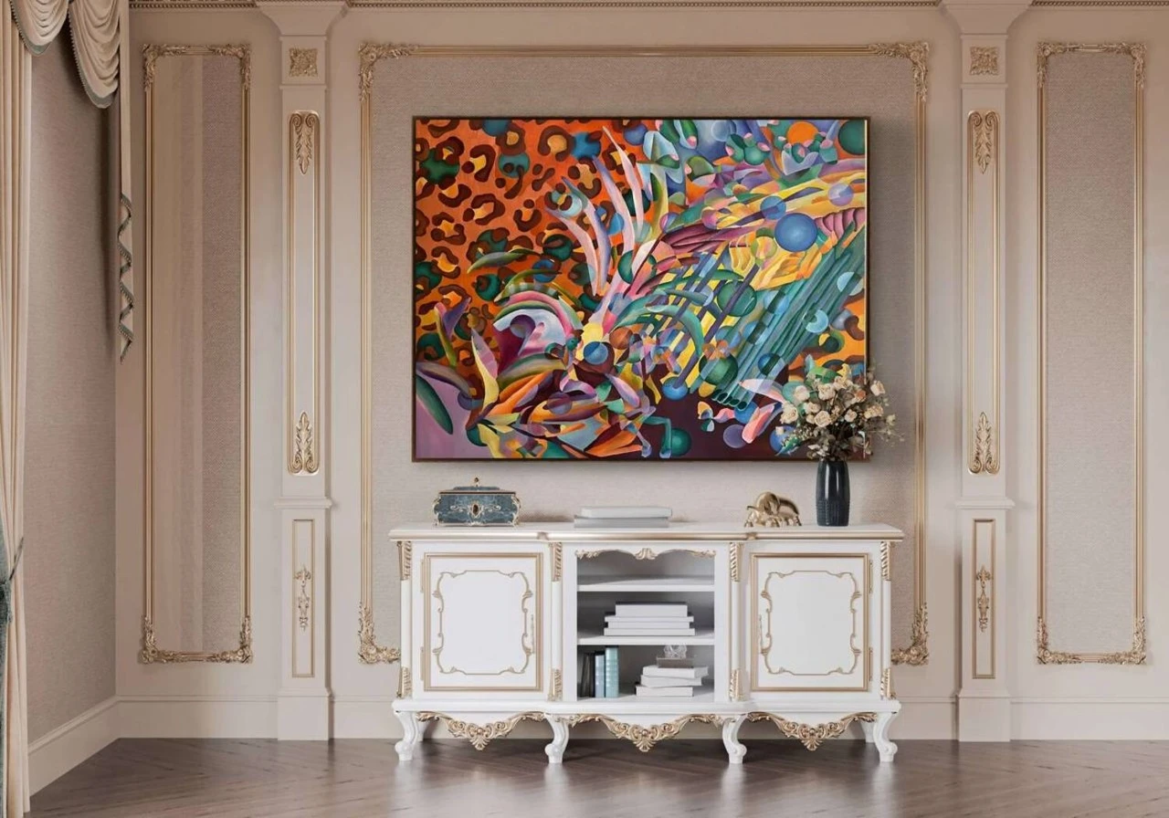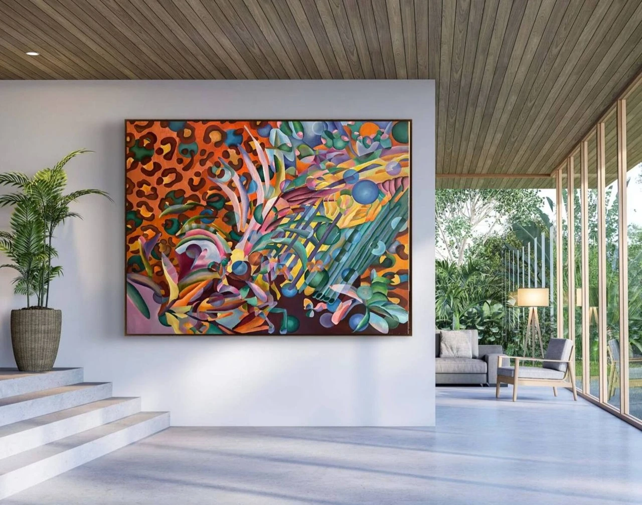В этом тропическом узоре можно долго бродить и созерцать прекрасного леопарда, скрывшегося от ваших глаз. Абстрактный, призрачный, и в то же время осязаемый и жаркий.