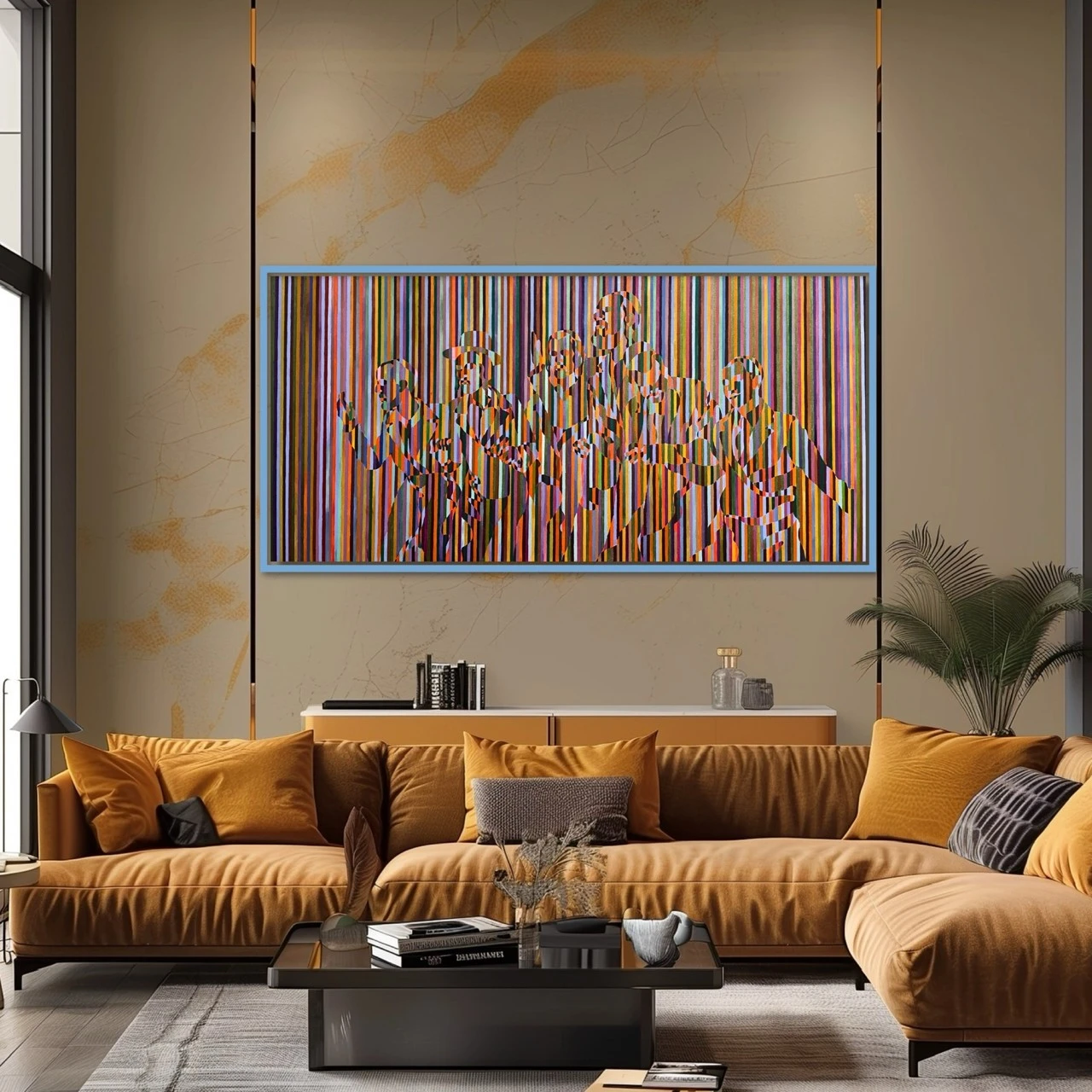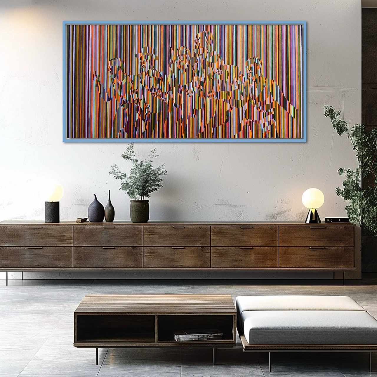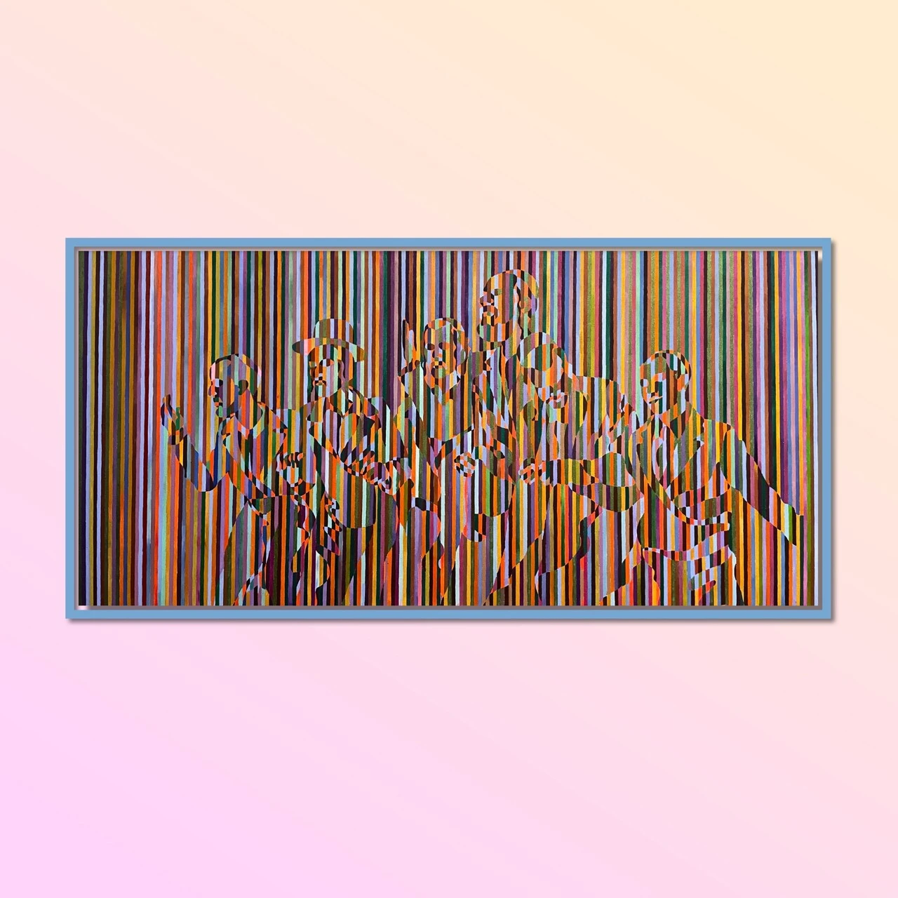 Эта работа относится к серии «Полоски». Я периодически возвращаюсь к своей ранней практике, когда хочется помедитировать. Картина написана маслом, кисточкой номер 1, на огнеупорном брезенте.
