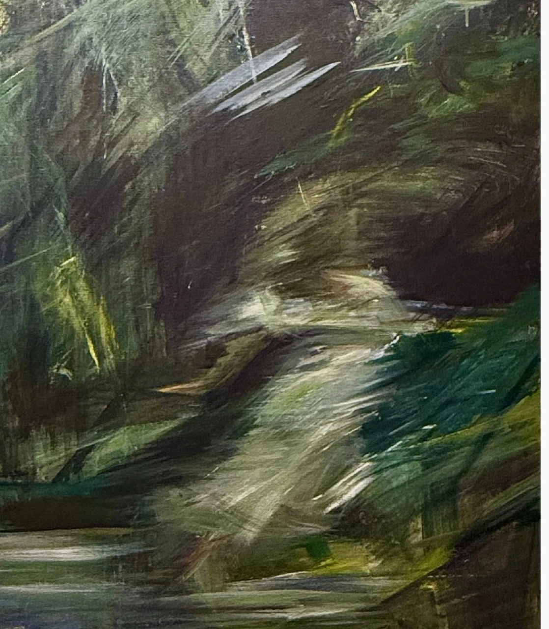 Картина входит в серию работ на тему Лес. Художница использует образы и внедряет их в природную среду. Исследуя тему памяти, поиска смыслов, на данной картине зритель может почувствовать побег и исчезновение в коридорах времени. Динамичные широкие маски кисти показывают динамику, энергию и ритмы.
