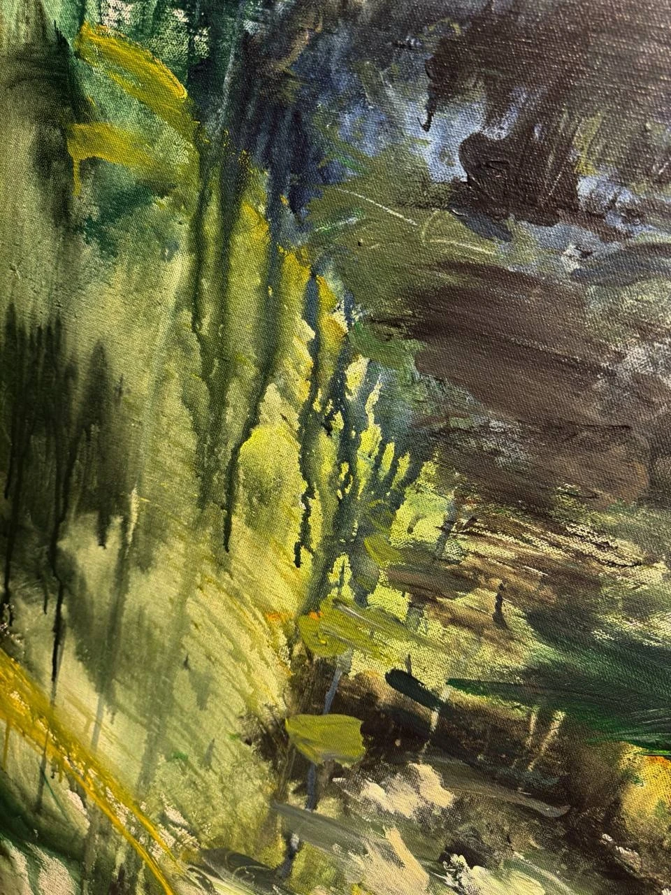 Погружение в глубину природы, наблюдение за слиянием форм и ритмами. На картине художница изобразила пруд с кувшинками, которые дарят спокойствие и умиротворение.