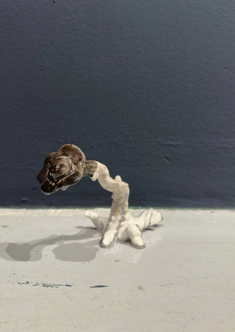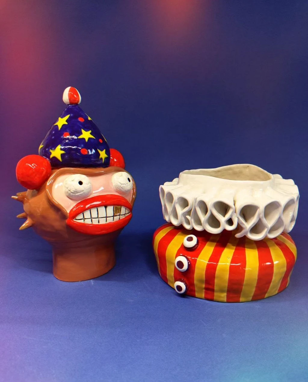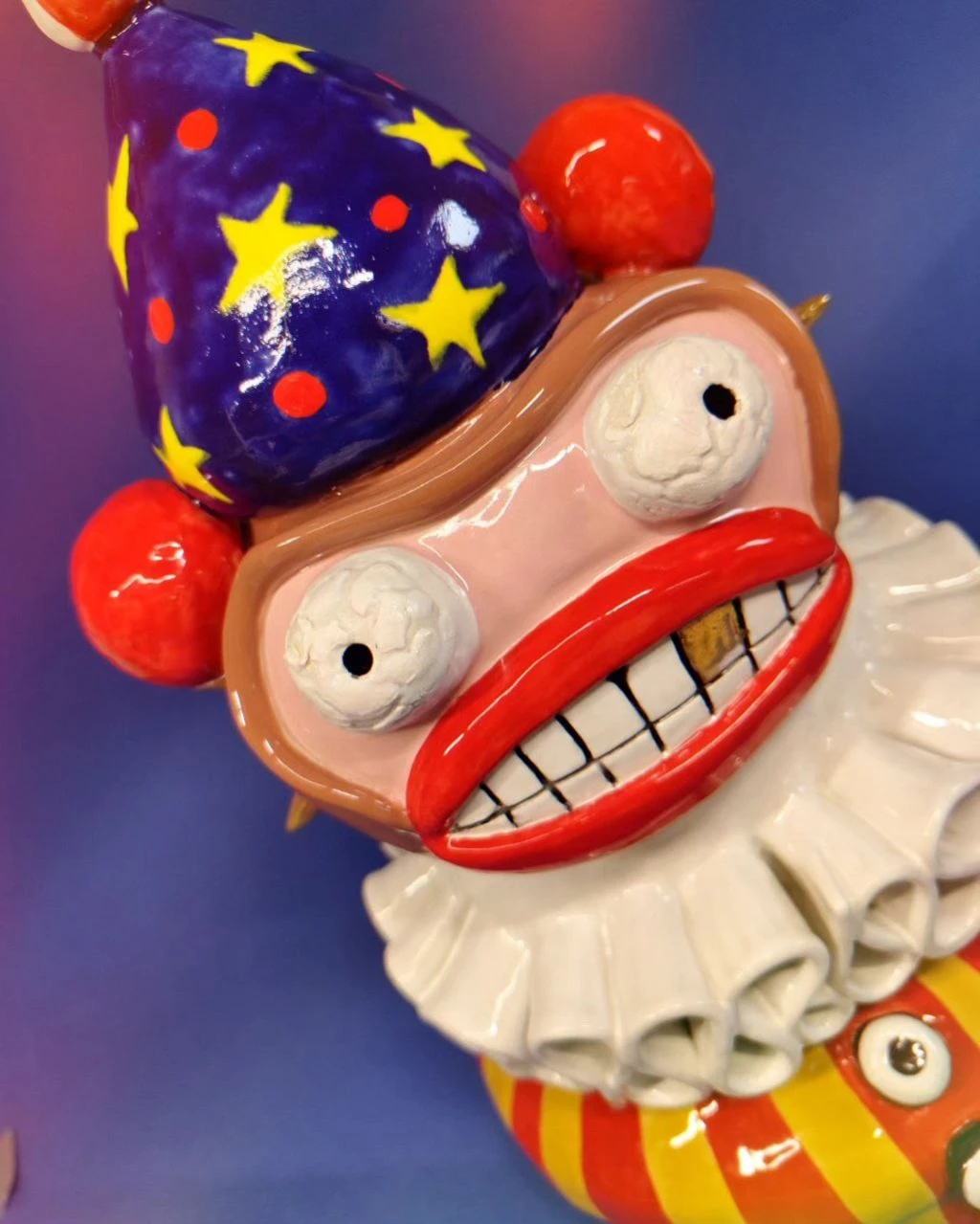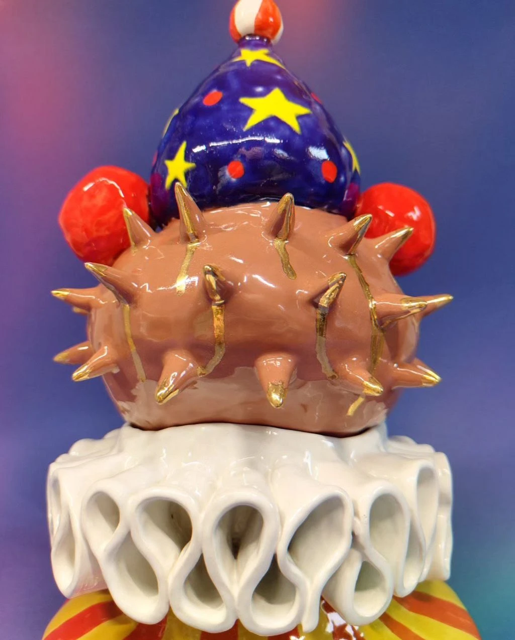 Обезьяна в жабо, ее голова снимается и она превращается в вазу. Это та самая обезьяна, которая бьет в тарелки и смотрит прямо в душу.