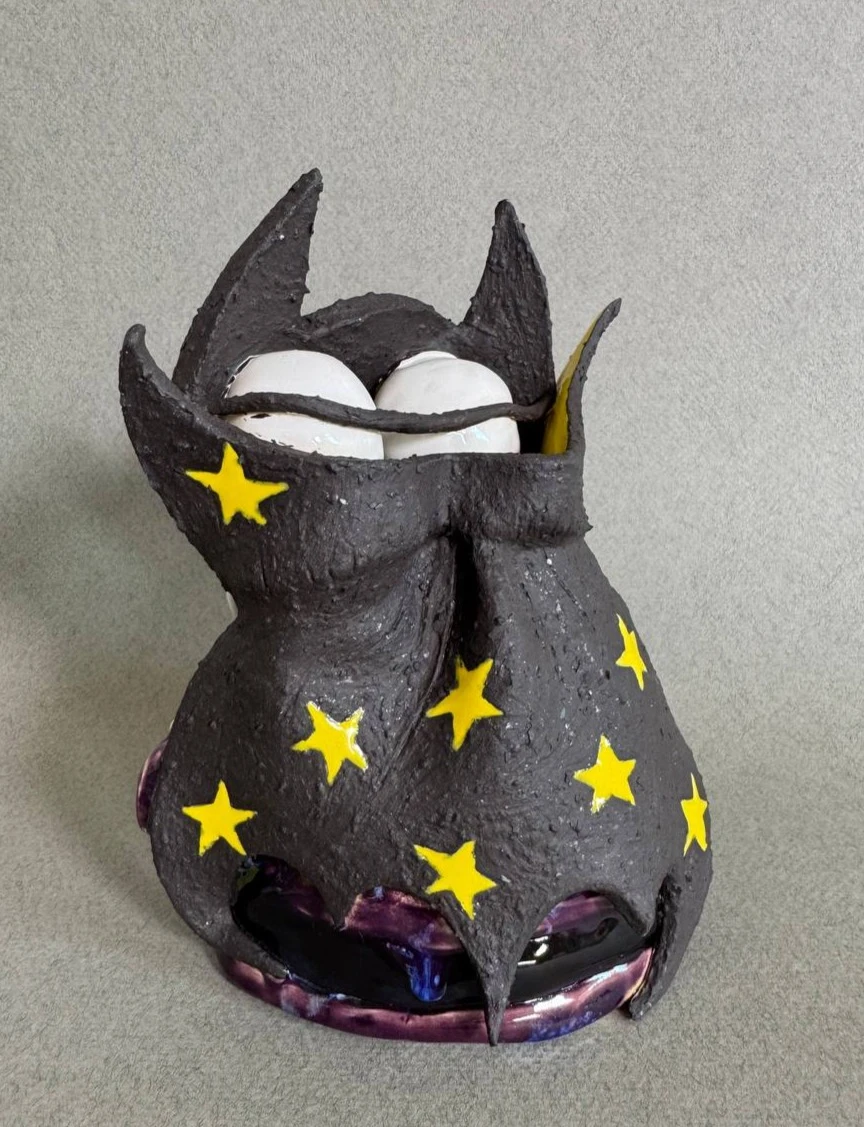 Керамический объект Уродец Шестой из одноименной серии уродцев. Каждый из представителей отражает какие-то качества меня и является определенным персонажем в королевском цирке Луи. Волшебник крайне добрый персонаж, обладает тайными знаниями и летает по ночам в своем плаще.