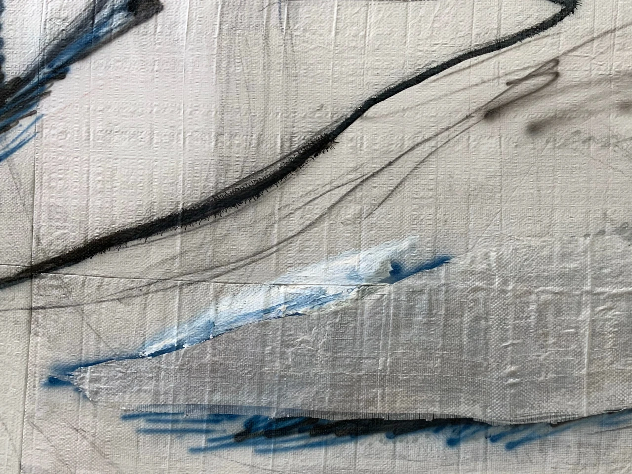 МатериалыТканевые мусорные мешки на подрамнике, уголь, аэрограф