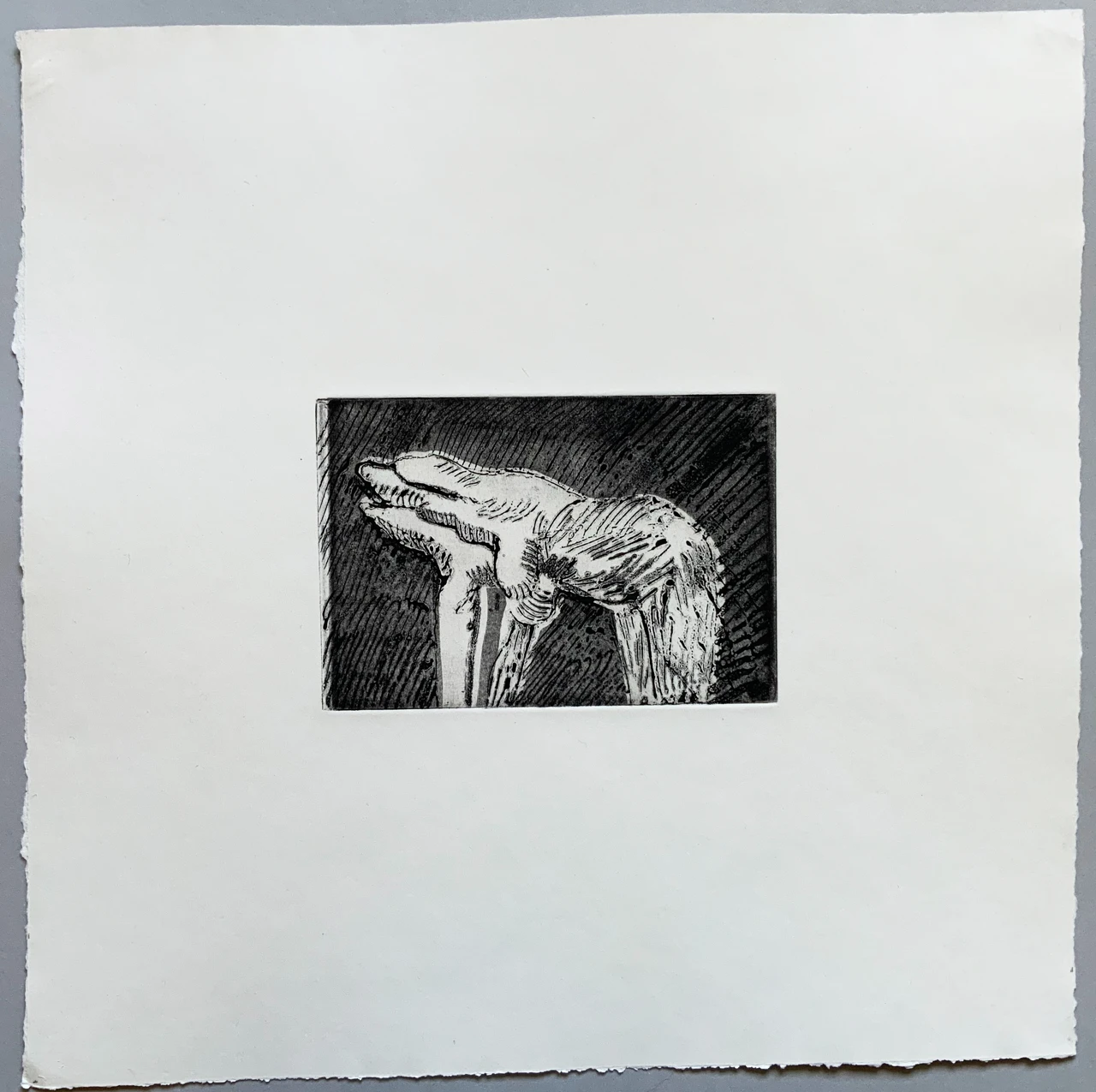 Данная работа в технике офорт не имеет тираж, сделана в единственном экземпляре.