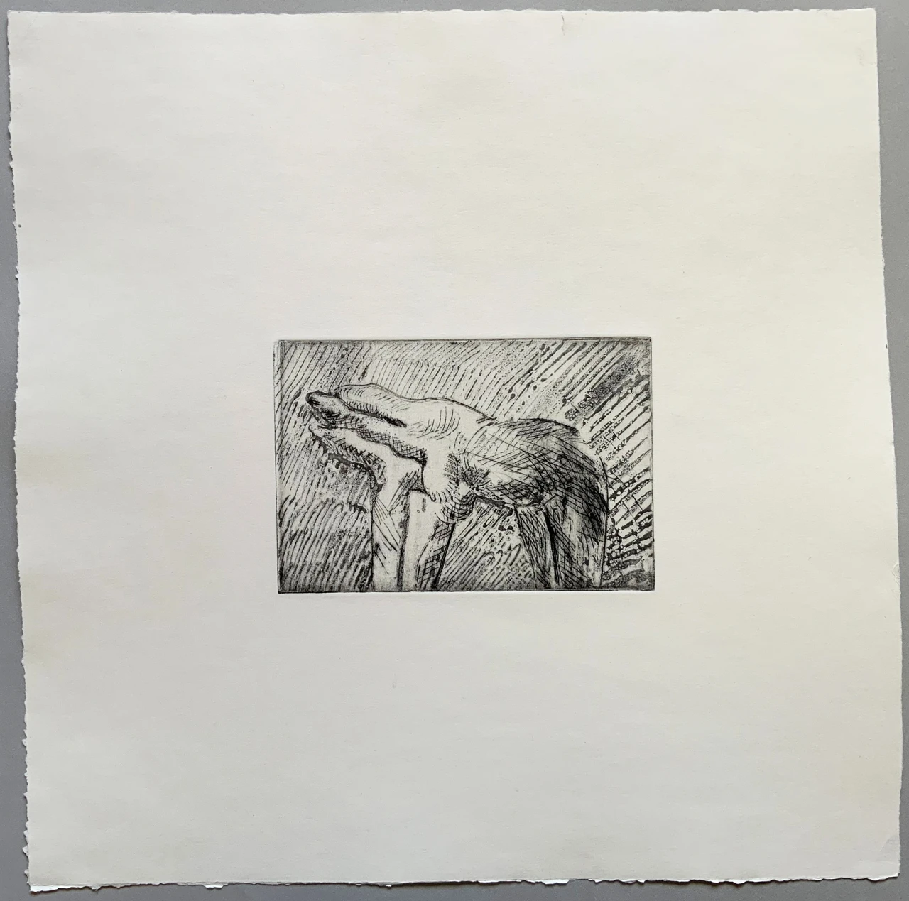 Данная работа в технике офорт не имеет тираж, сделана в единственном экземпляре.