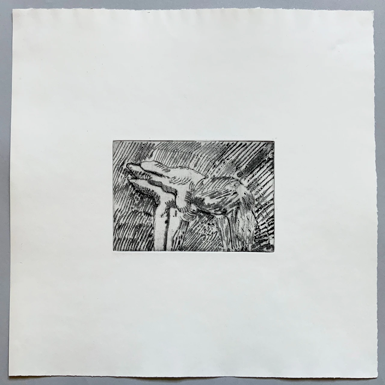 Данная работа в технике офорт не имеет тираж, сделана в единственном экземпляре.