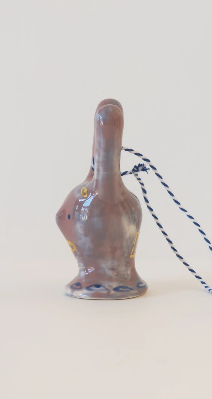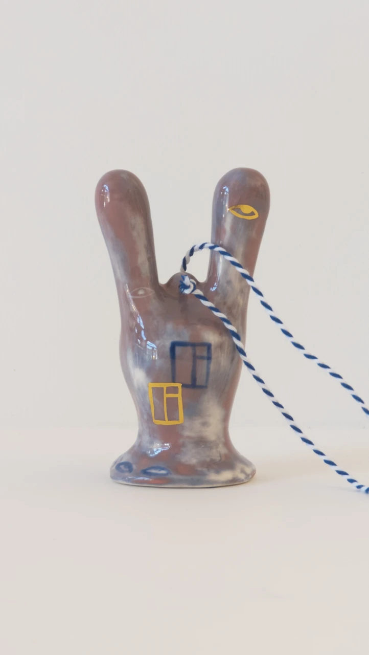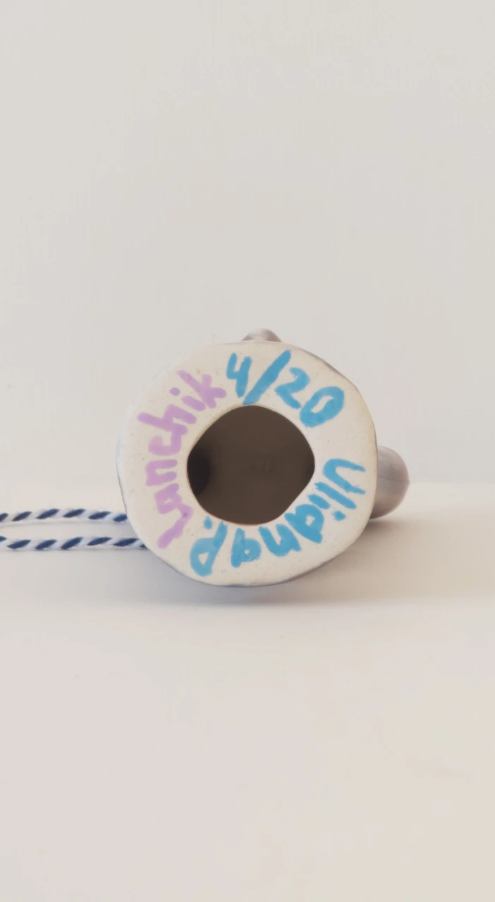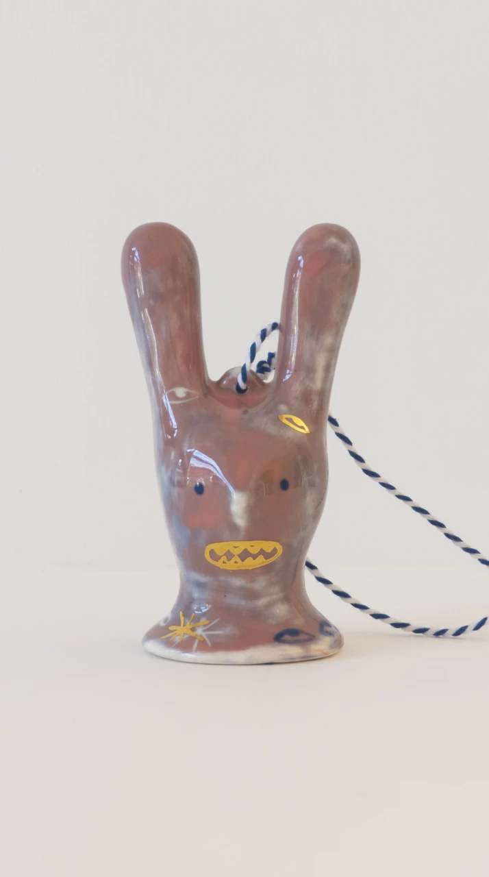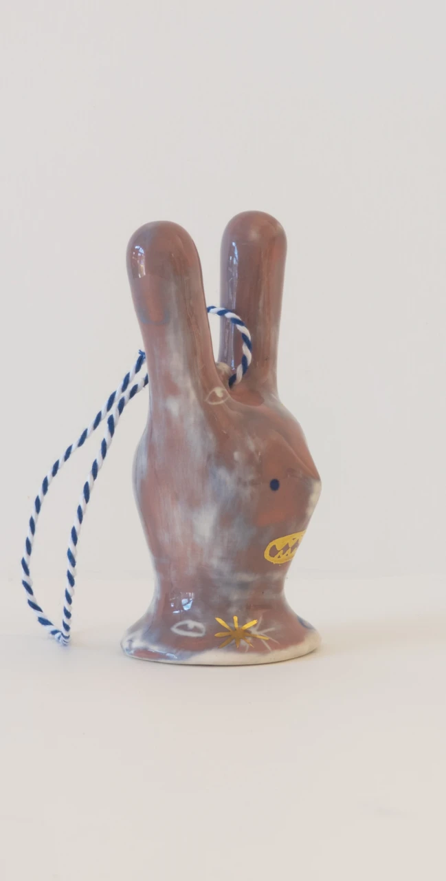 Серия ёлочных украшений, созданная в коллаборации художника Ульяны Пучеглазовой и керамистки Кати Ланчиковой: "Нам хотелось создать игрушку, которая сохранит дух зимних праздников и при этом будет авторской скульптурой, с читаемым почерком авторов". Катя создала форму абстрактного зайца и отлила тираж из полуфарфора, Ульяна расписывала зайцев подглазурными красками и позолотой.