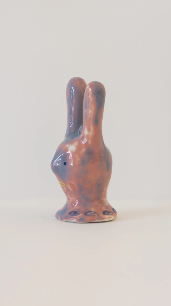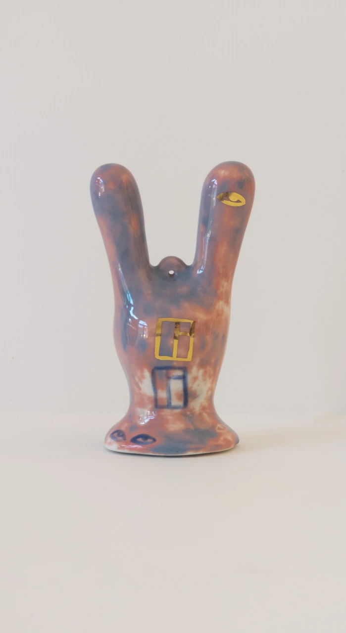 Серия ёлочных украшений, созданная в коллаборации художника Ульяны Пучеглазовой и керамистки Кати Ланчиковой: "Нам хотелось создать игрушку, которая сохранит дух зимних праздников и при этом будет авторской скульптурой, с читаемым почерком авторов". Катя создала форму абстрактного зайца и отлила тираж из полуфарфора, Ульяна расписывала зайцев подглазурными красками и позолотой.