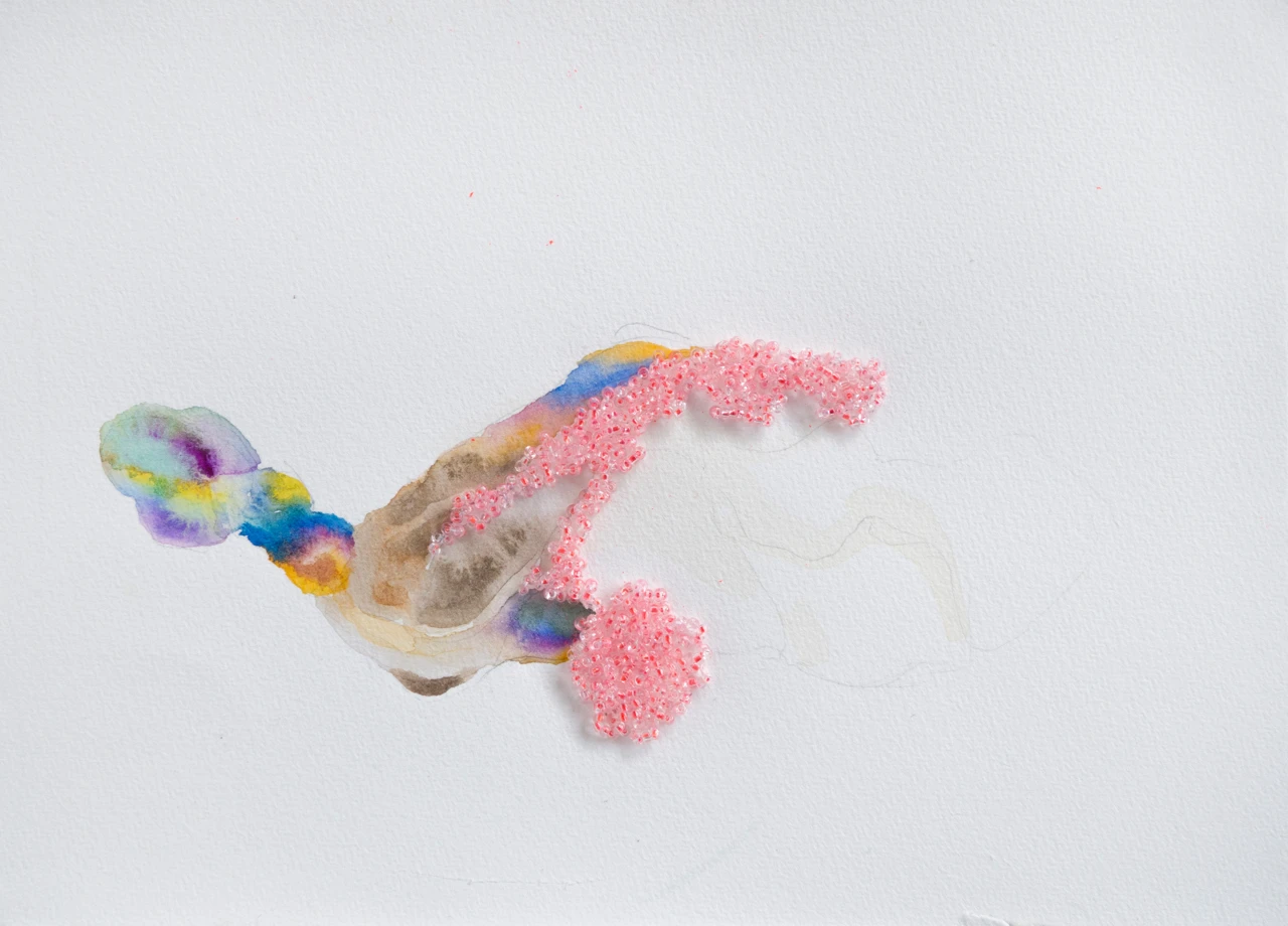 В своих работах Устина использует процесс автоматического письма, который облекает время в материальную форму. Ее практика основана на трудоемких созерцательных практиках, которые определяют направление работ.