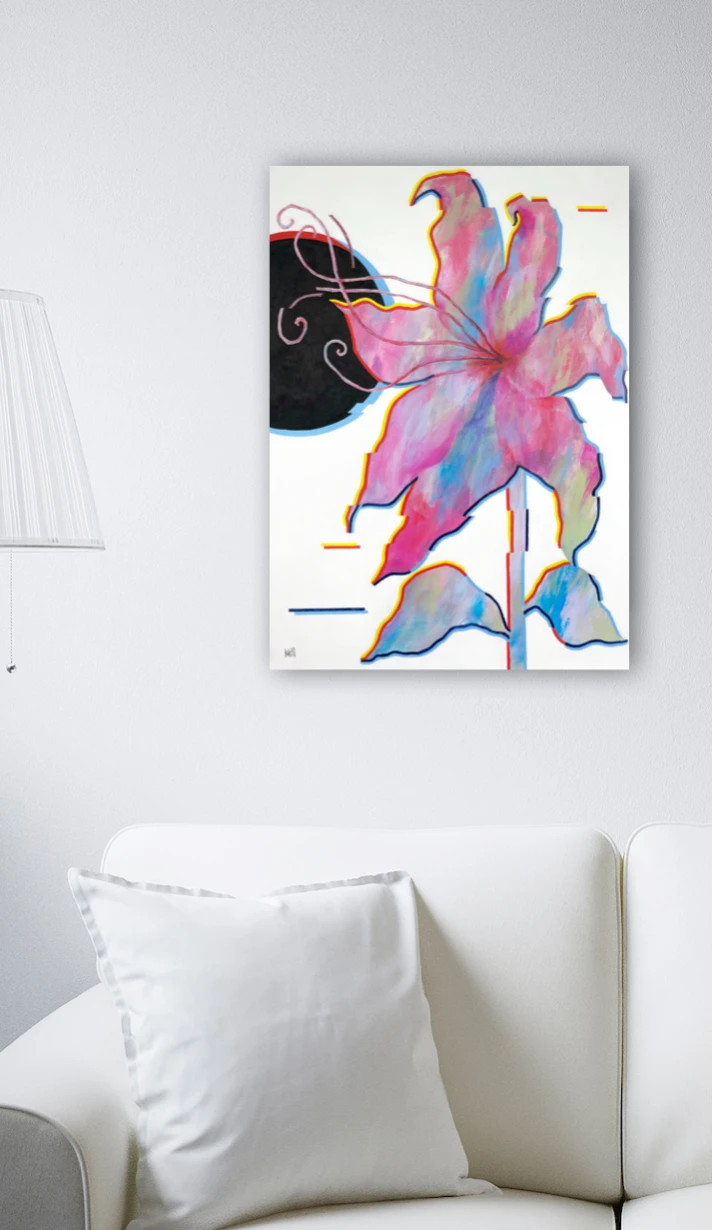 Цветы традиционно символизируют красоту и жизнь. Глитч-арт, с другой стороны, вызывает ассоциации с технологическими сбоями. Такое сочетание создает контраст между естественным и искусственным, вызывая размышления о влиянии технологии, а также о личностном праве на ошибку.