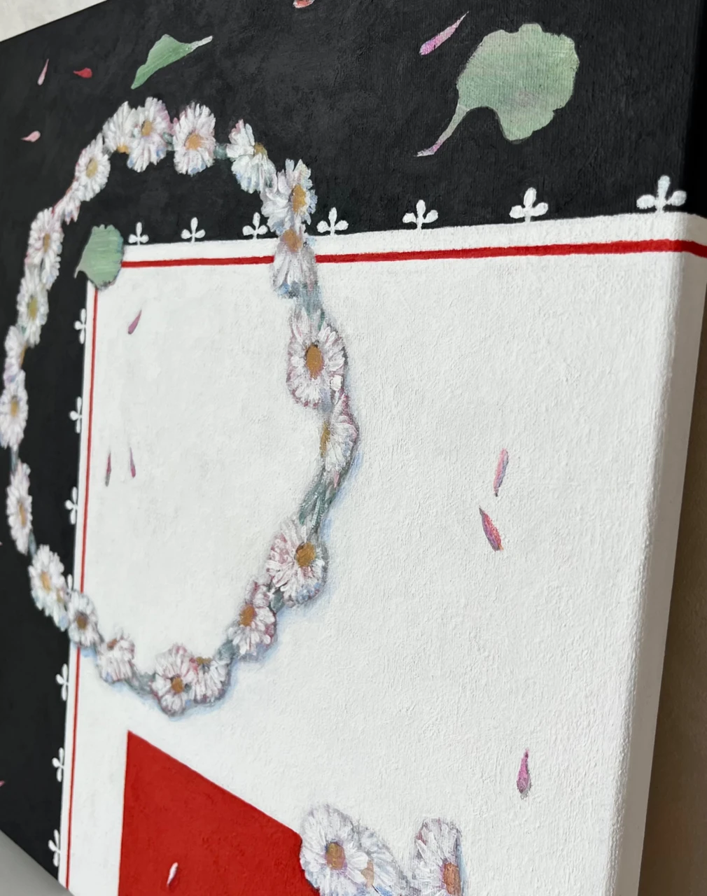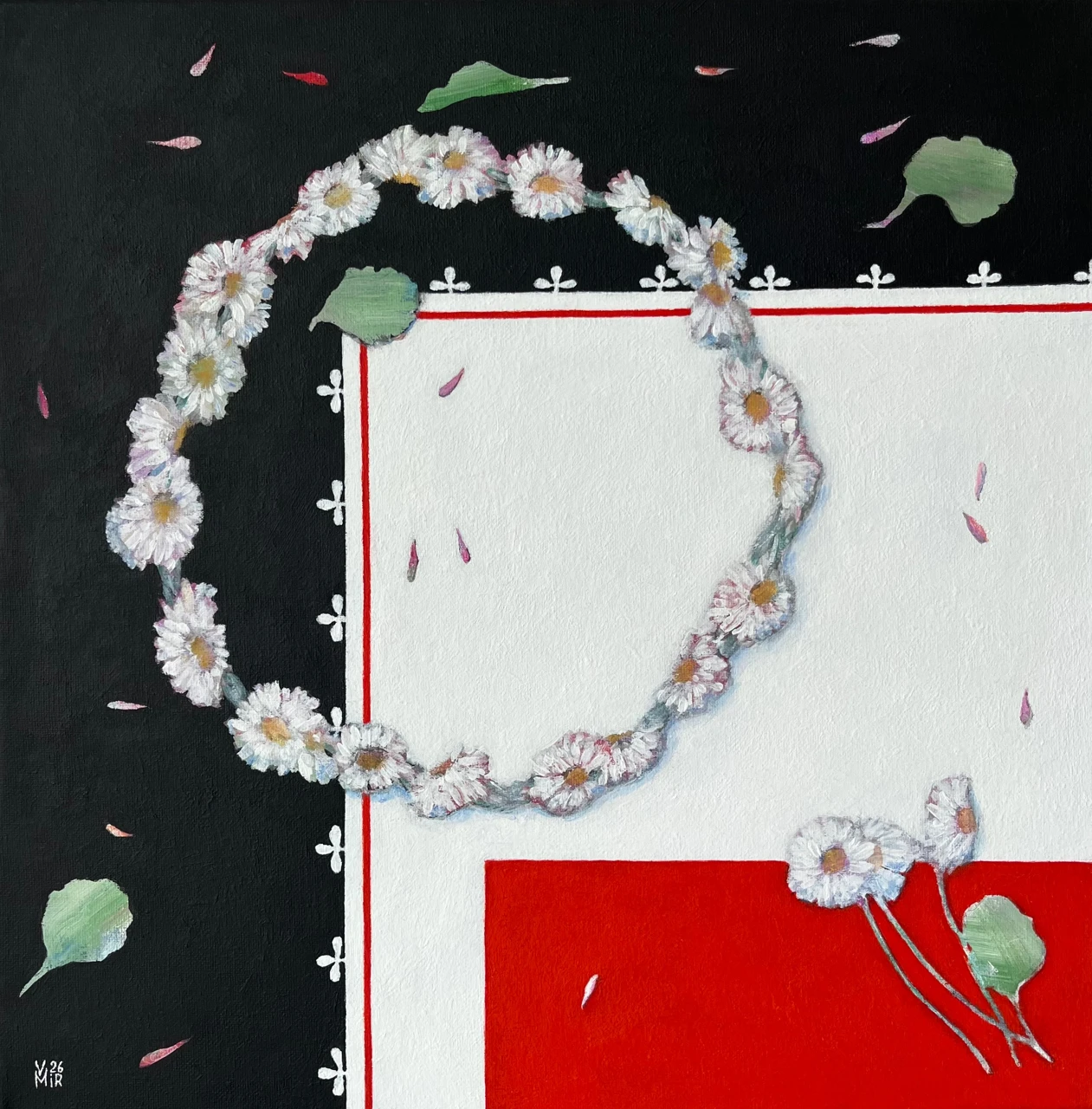 Валентина Мир - современная художница из Москвы, исследующая человеческие чувства через символизм цветочных образов с отсылкой к супрематизму.