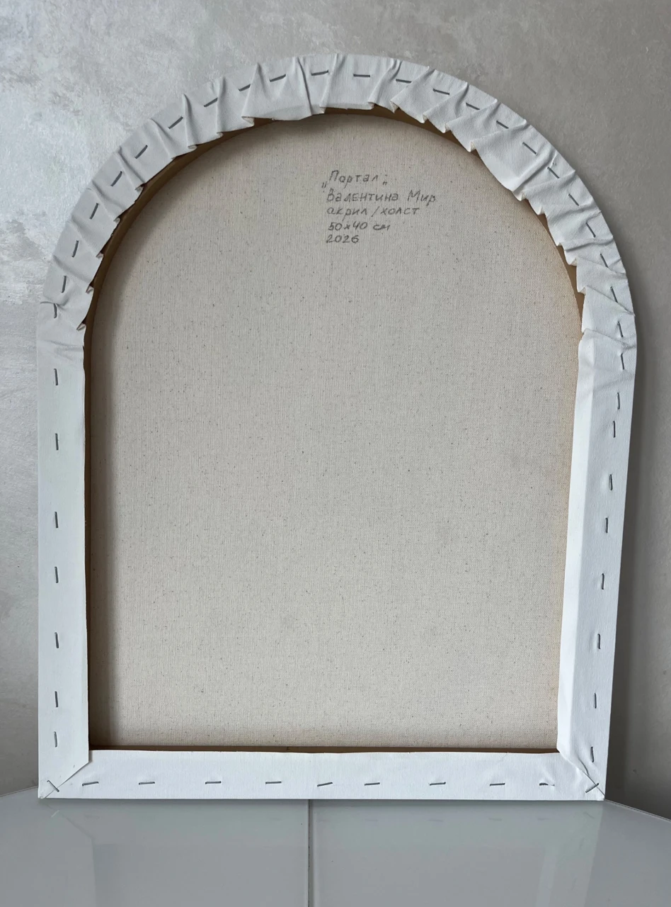 Работа выполнена на холсте в форме арки.