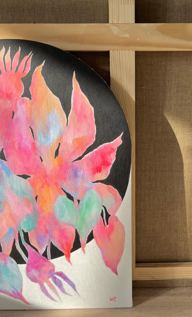 Валентина Мир — современная художница из Москвы, исследующая человеческие чувства через символизм цветочных образов с отсылкой к супрематизму.