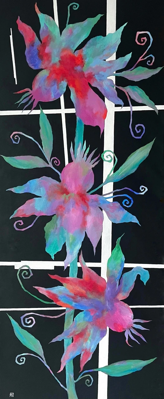 Валентина Мир - современная художница из Москвы, исследующая человеческие чувства через символизм цветочных образов с отсылкой к супрематизму.