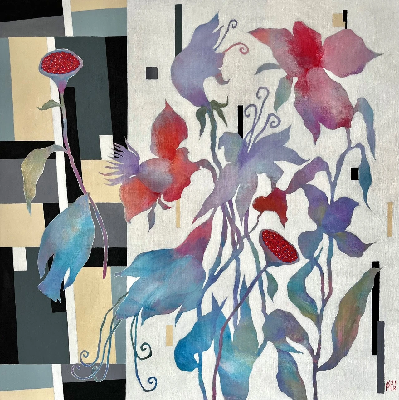 Валентина Мир — современная художница из Москвы, исследующая человеческие чувства через символизм цветочных образов с отсылкой к супрематизму.