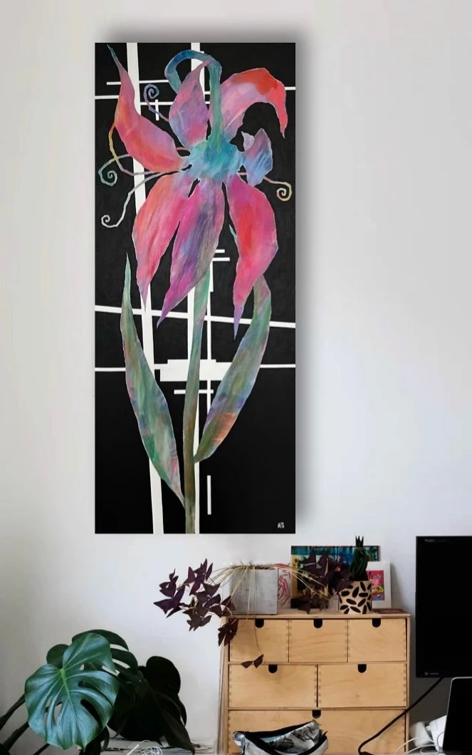 Валентина Мир - современная художница из Москвы, исследующая человеческие чувства через символизм цветочных образов с отсылкой к супрематизму.