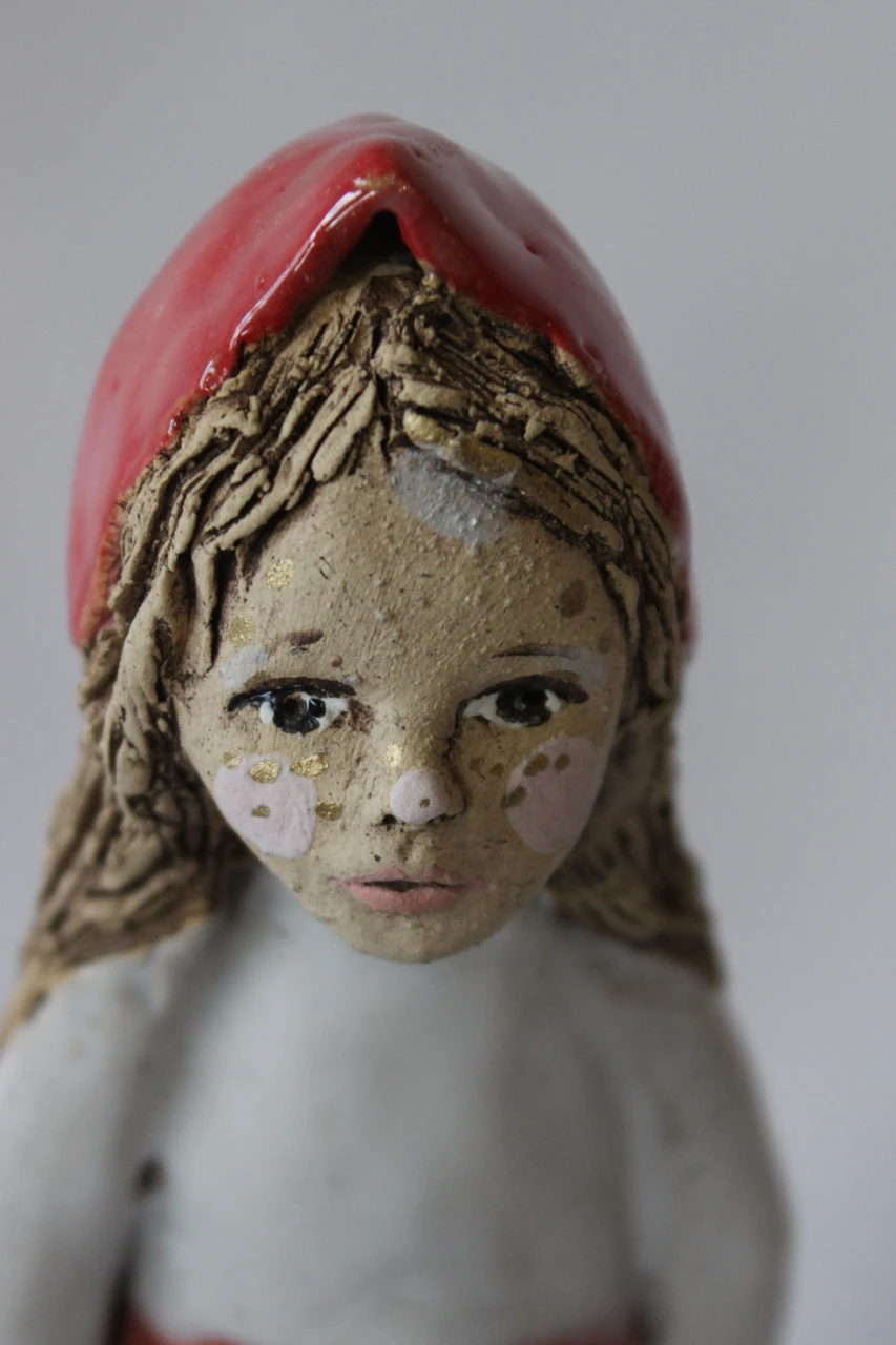 Вдохновленная воспоминаниями о новогодних утренниках в детском саду, эта работа стремится запечатлеть те трогательные моменты, когда мир казался полным волшебства и ожиданий. Фигура девочки выражает одновременно нежность и робость. Её чуть грустный и напуганный взгляд показывает внутренние переживания, которые знакомы каждому из нас в детстве. Она еще не знает, кем станет, когда вырастет, и это ощущение неопределенности делает её образ особенно трогательным. Образ "Красной Шапочки" становится символом детских страхов и надежд, напоминая о том, что каждый из нас в какой-то момент терялся в своих мечтах о будущем.