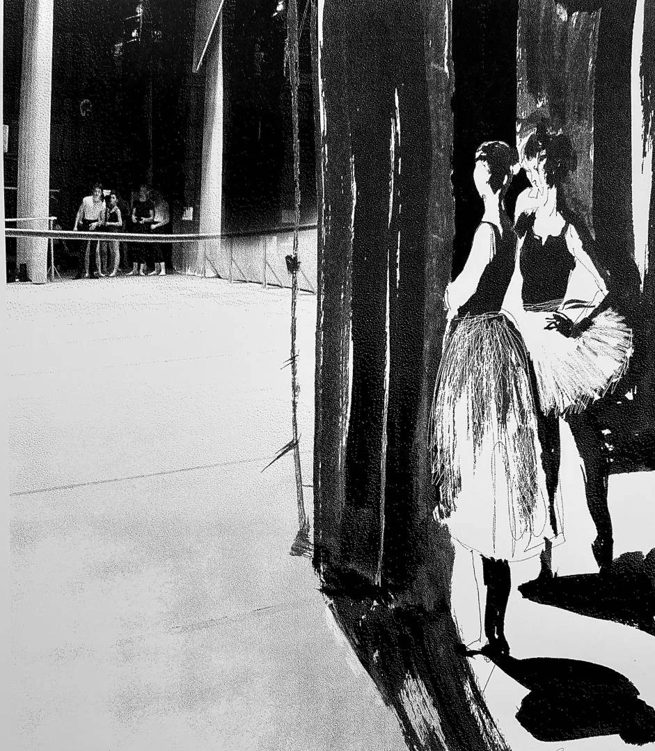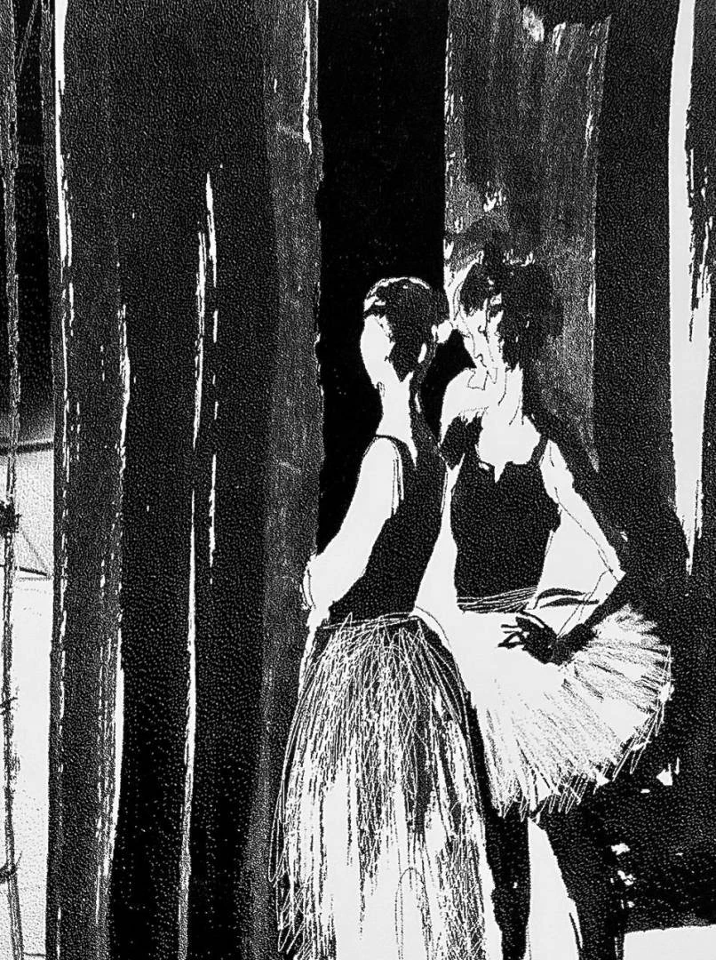 Серия графических листов «Танцующие» посвящена балету. В ней я пыталась изучить классический танец как некую изобразительную форму, не упуская при этом жизнь героев — танцующих людей.