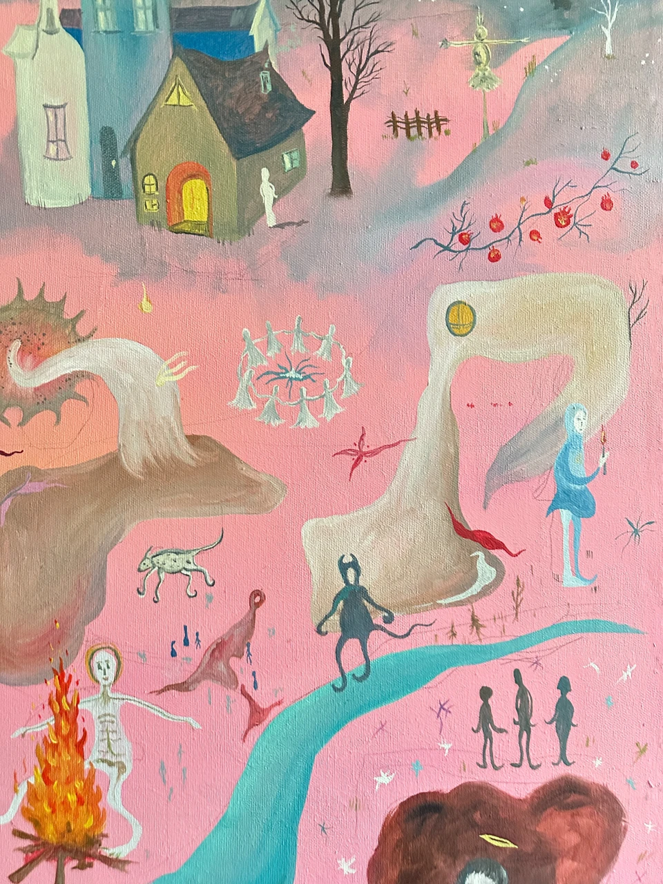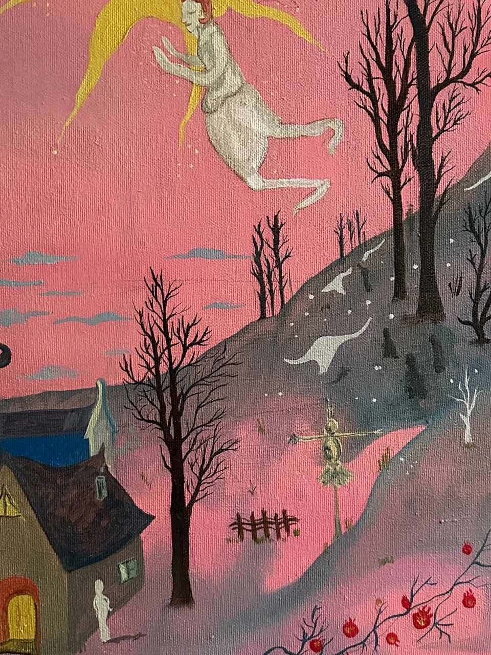 В искусстве и в процессе создания работ Виктория занимается поиском, детальным анализом и переработкой самобытности архангельского северного края. Она смотрит на живопись как на мистическое сказочное полотно и обрядовый ритуал.