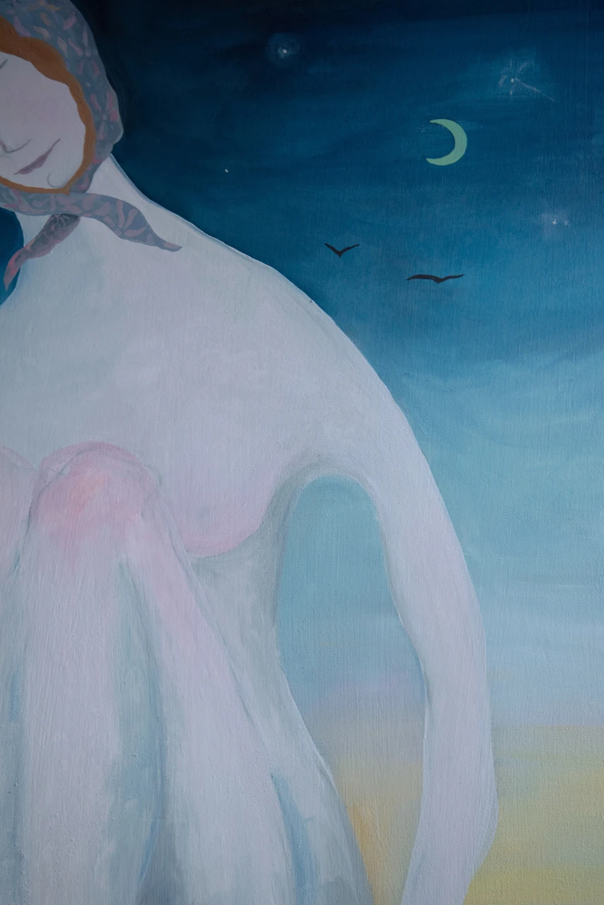 В искусстве и в процессе создания работ Виктория занимается поиском, детальным анализом и переработкой самобытности архангельского северного края. Она смотрит на живопись как на мистическое сказочное полотно и обрядовый ритуал.