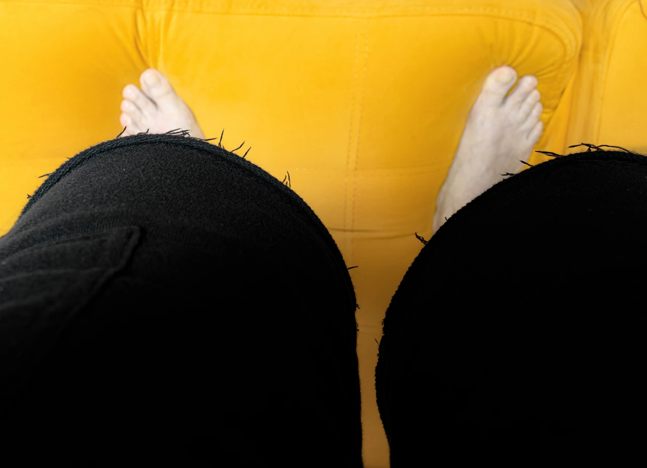 Работа исследует границы восприятия современного искусства через призму иронии и саморефлексии. Банальный бытовой образ — собственные ноги на диване — превращается в формальную композицию из цветовых пятен и линий, заставляя зрителя усомниться: где проходит грань между повседневностью и арт-объектом?